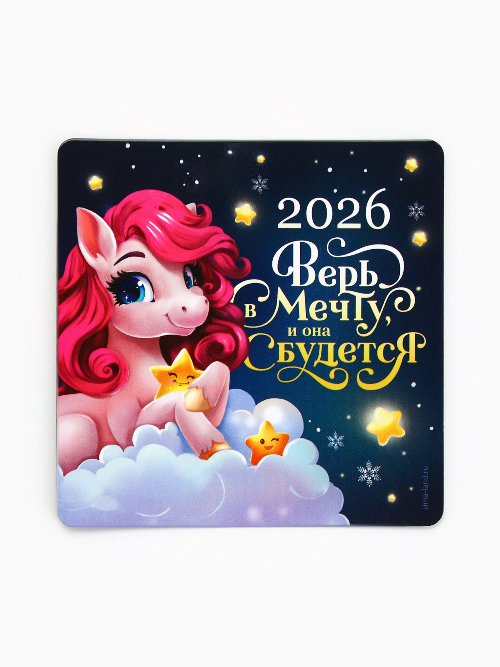 Магнит новогодний на холодильник "Верь в мечту", 8x8 см, 8x8x0.3 см., Сима-ленд, Китай