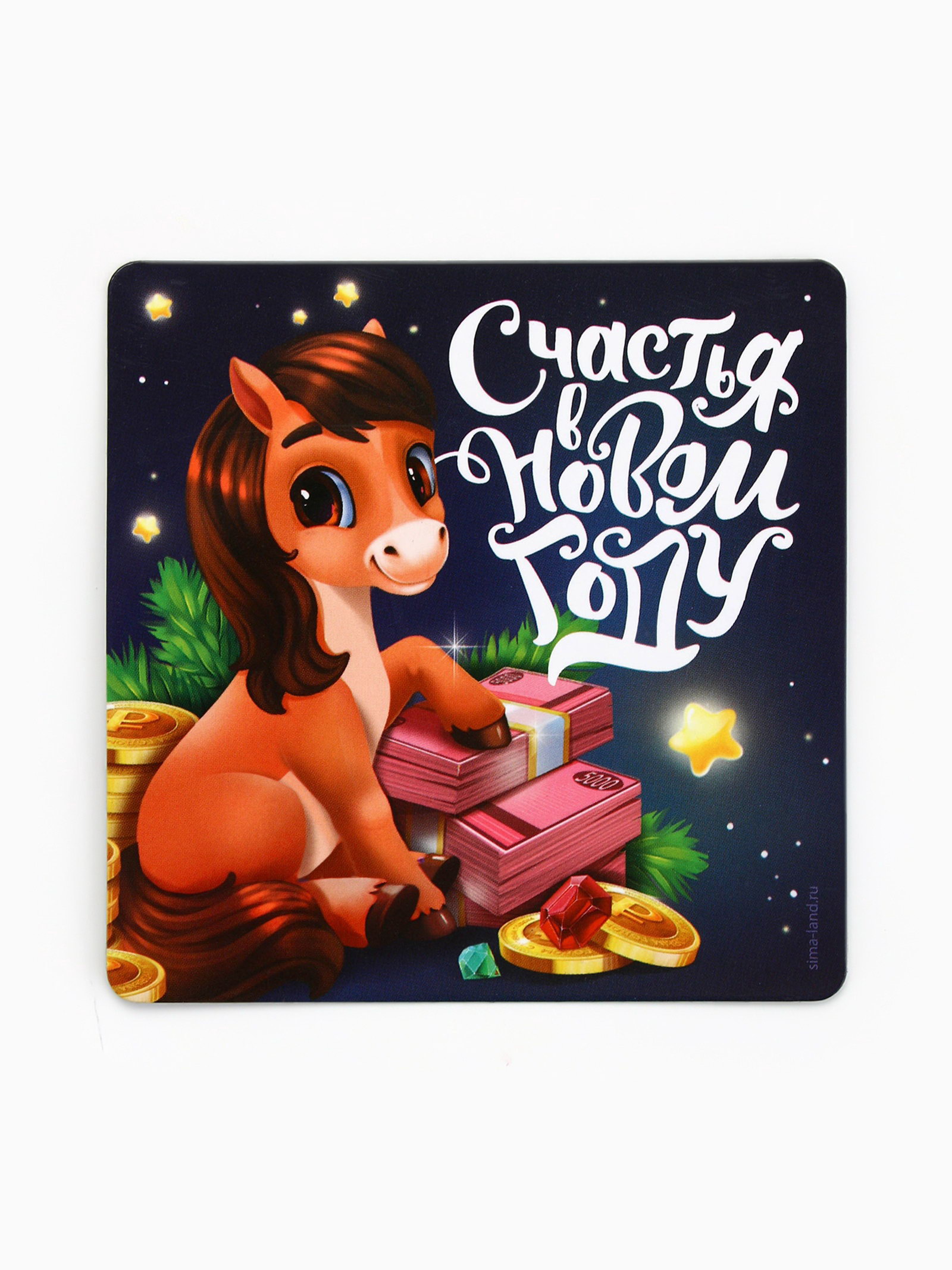 Магнит на холодильник "Счастья в Новом году", 8x8 см, 8x8x0.3 см., Сима-ленд, Китай