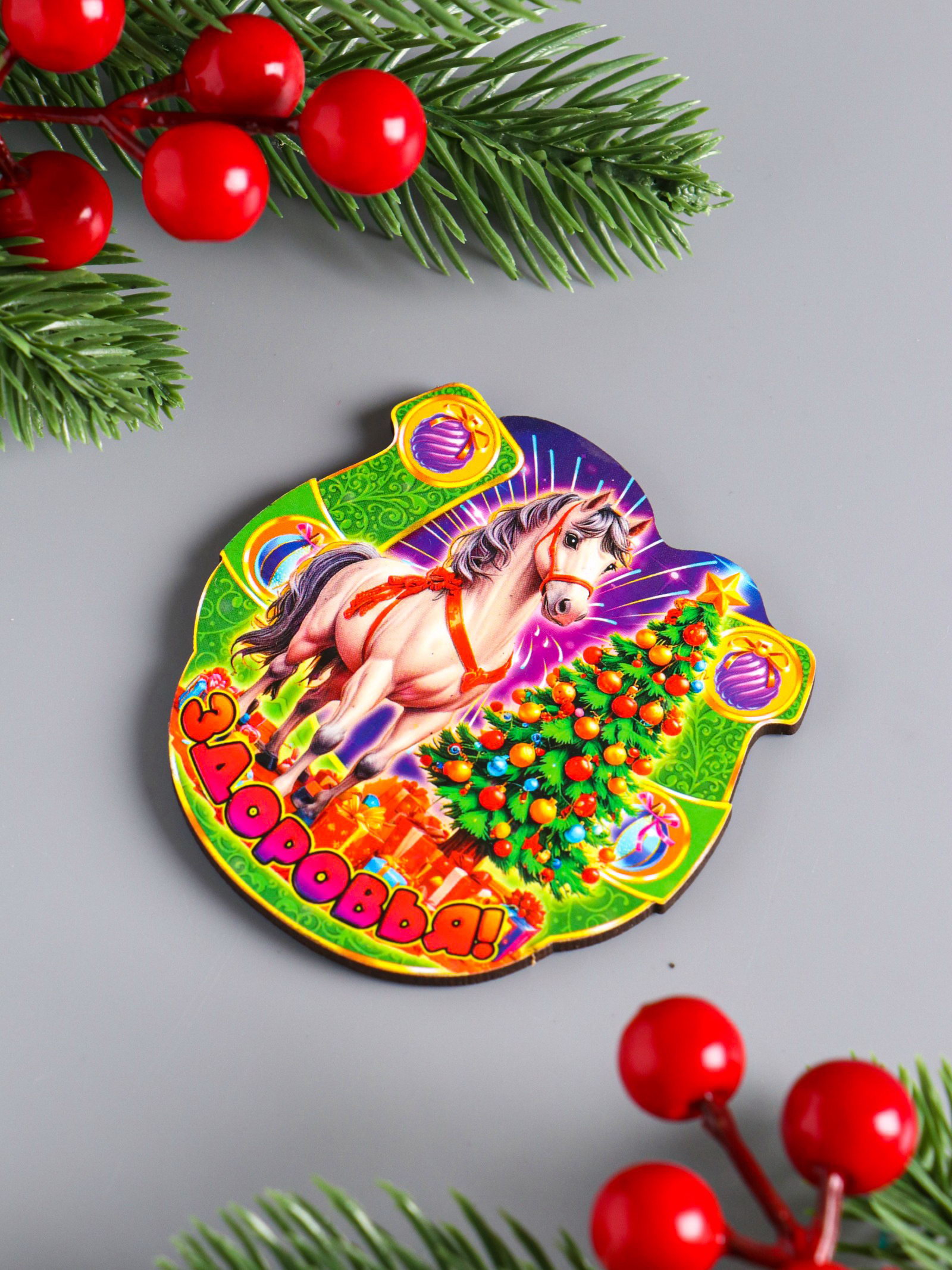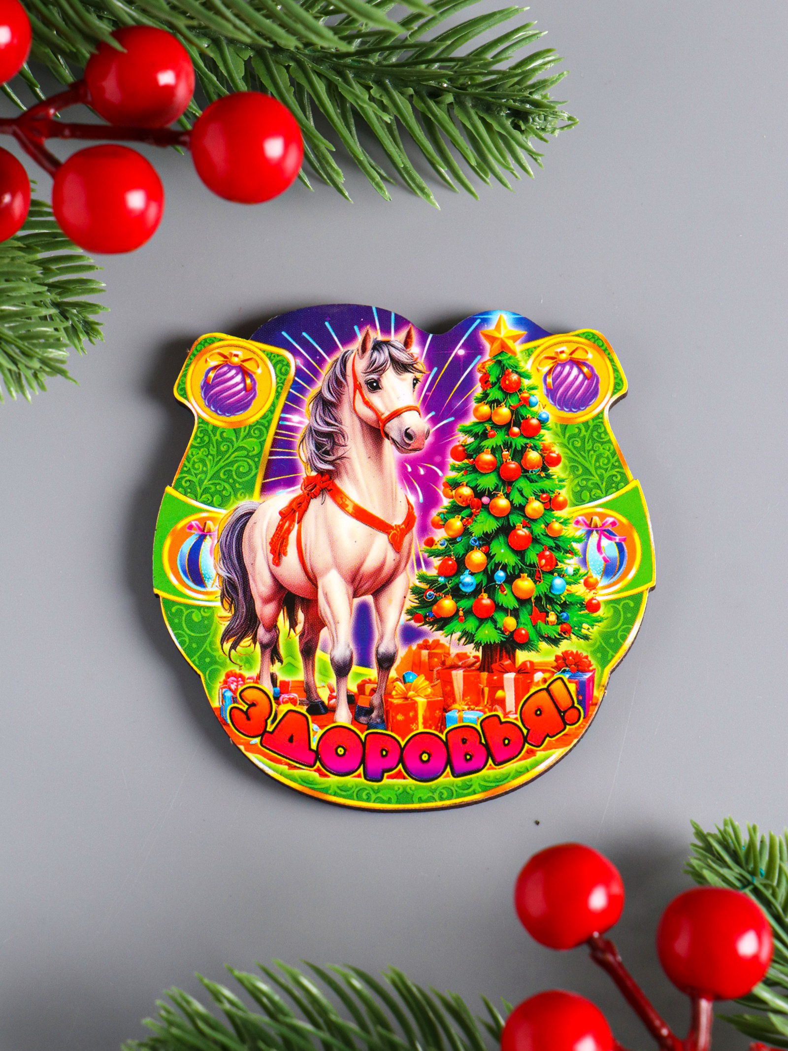Магнит на холодильник "Новогодняя подкова с конём. Здоровья", 7x7 см, Дарим Красиво, Россия