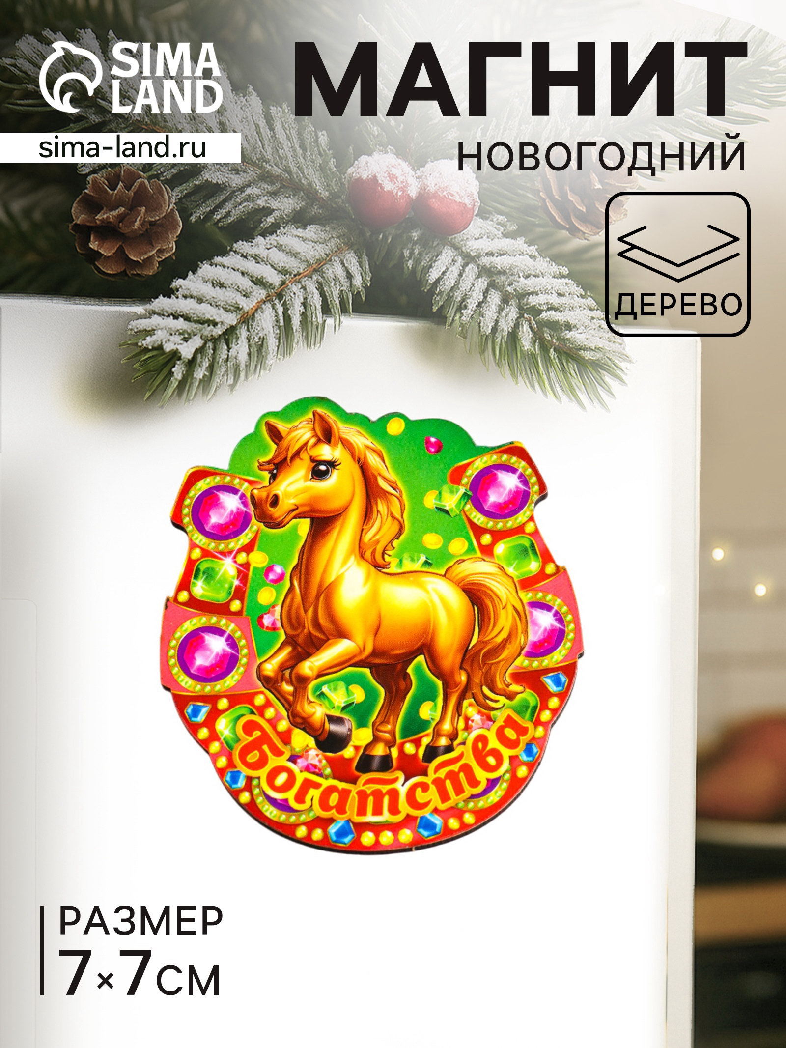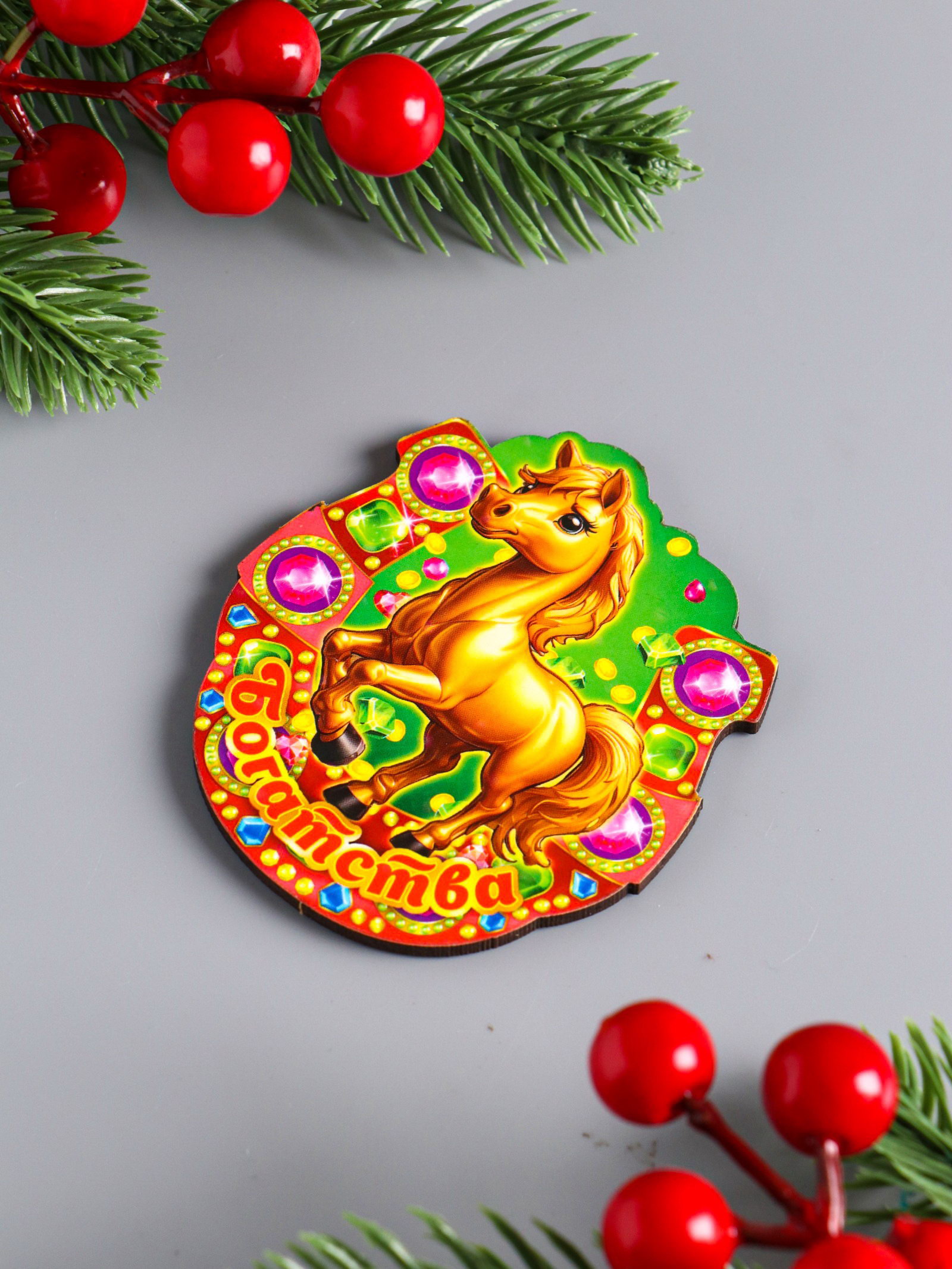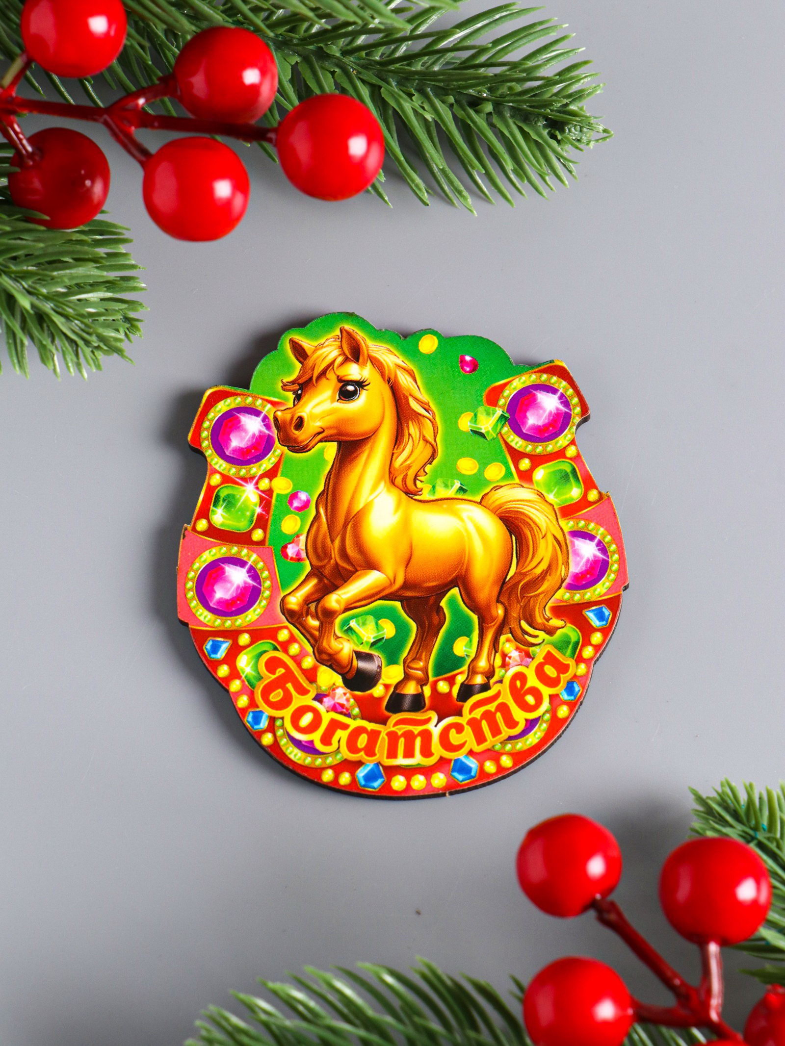 Магнит на холодильник "Новогодняя подкова с конём. Богатства", 7x7 см, Дарим Красиво, Россия