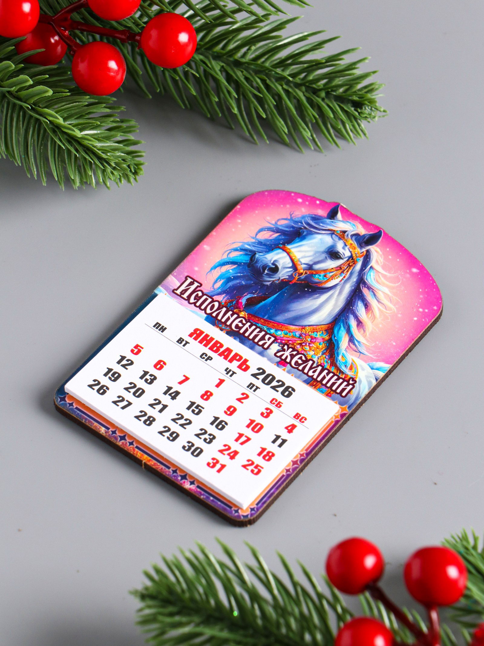 Магнит на холодильник и календарь отрывной 2026 "Новогодний конь. Исполнения желаний", 9.5x6.5 см, Дарим Красиво, Россия