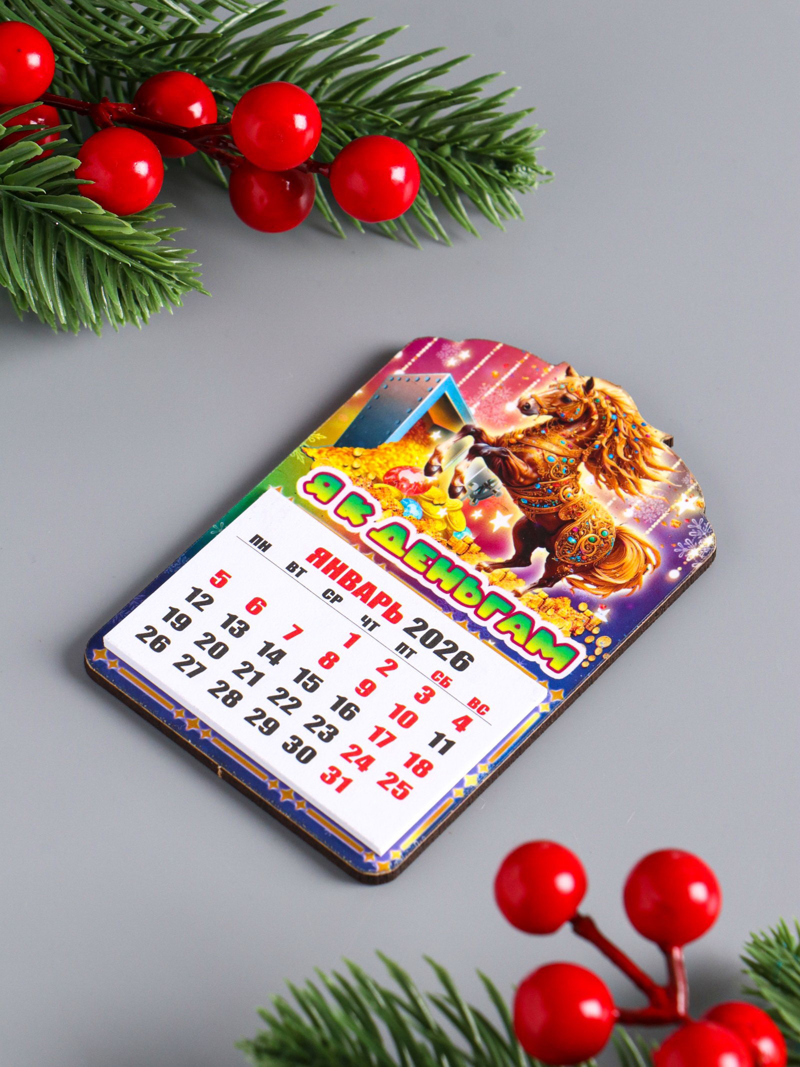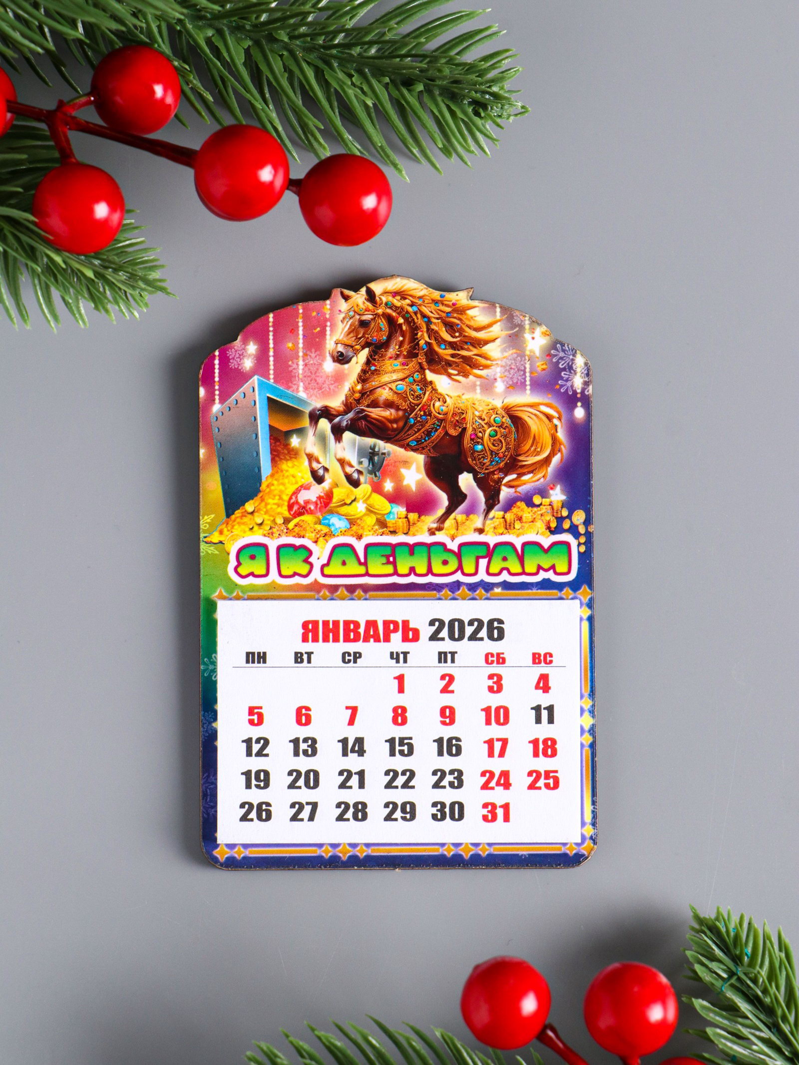 Магнит на холодильник и календарь отрывной 2026 "Новогодний конь. Я к деньгам", 9.5x6.5 см, Дарим Красиво, Россия