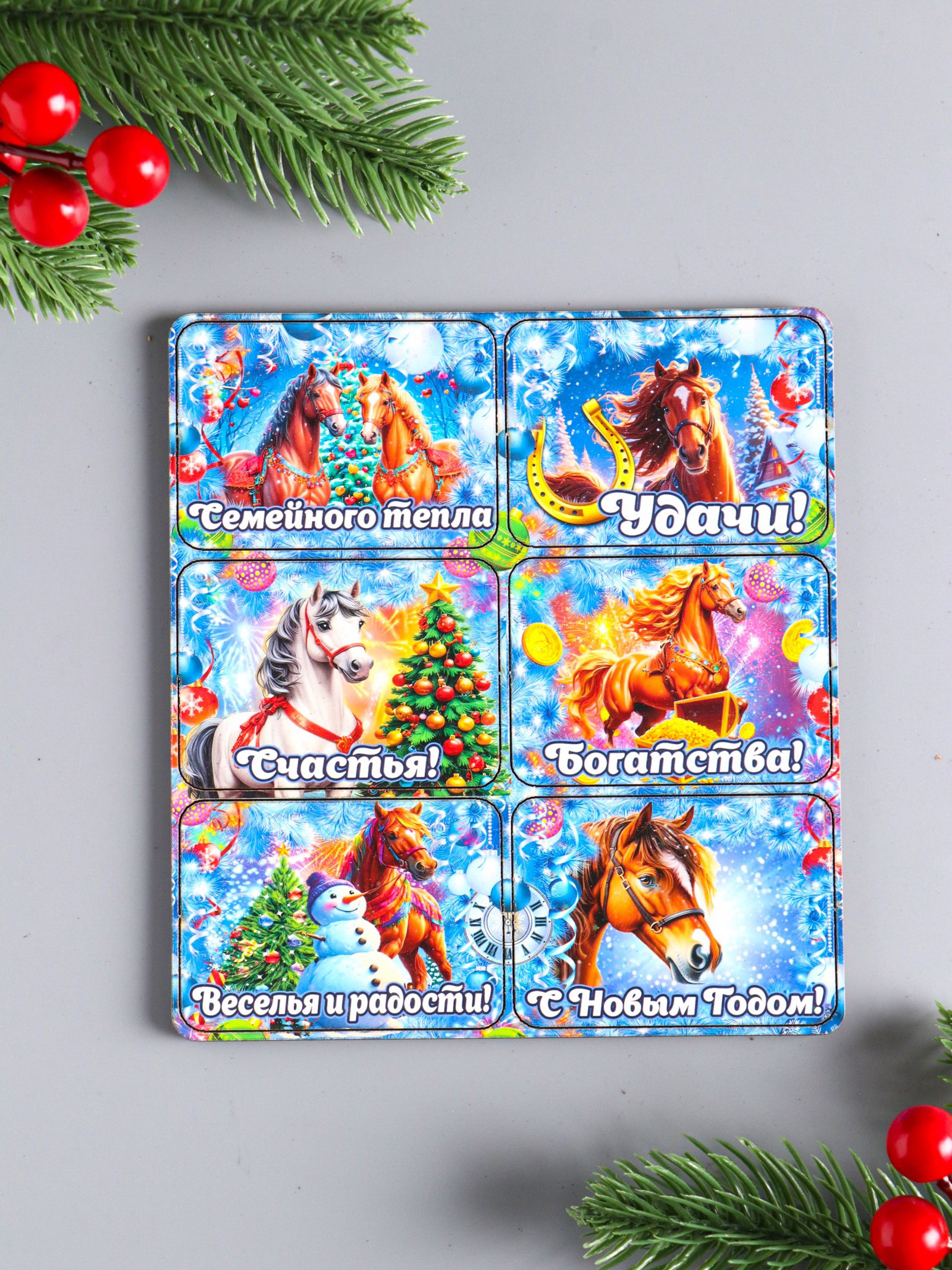 Набор магнитов на холодильник 6 шт. "Конь новогодний: Семейного тепла", 6x4.5 см, Дарим Красиво, Россия