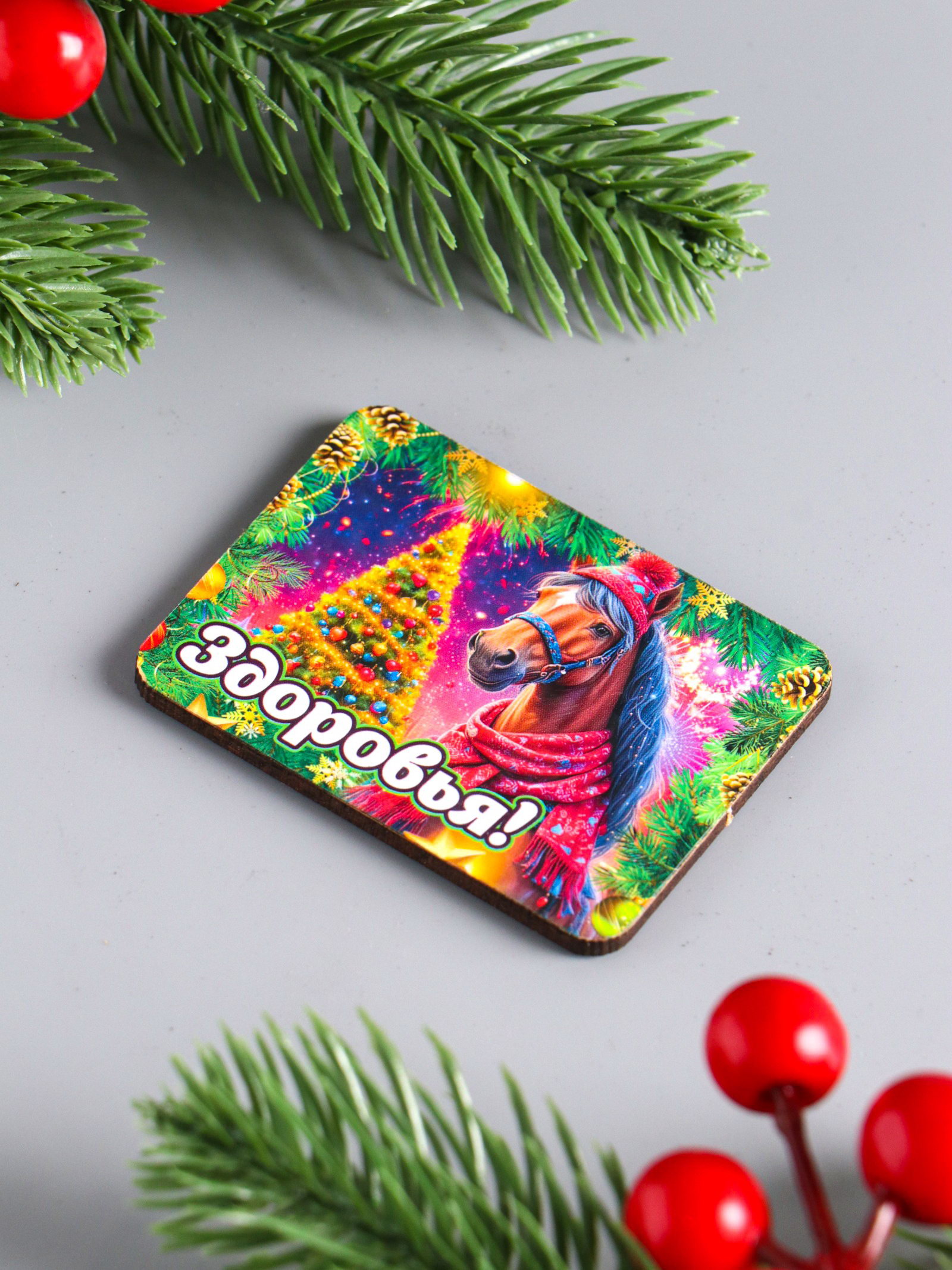 Набор магнитов на холодильник 6 шт. "Конь новогодний: Удачи", 6x4.5 см, Дарим Красиво, Россия