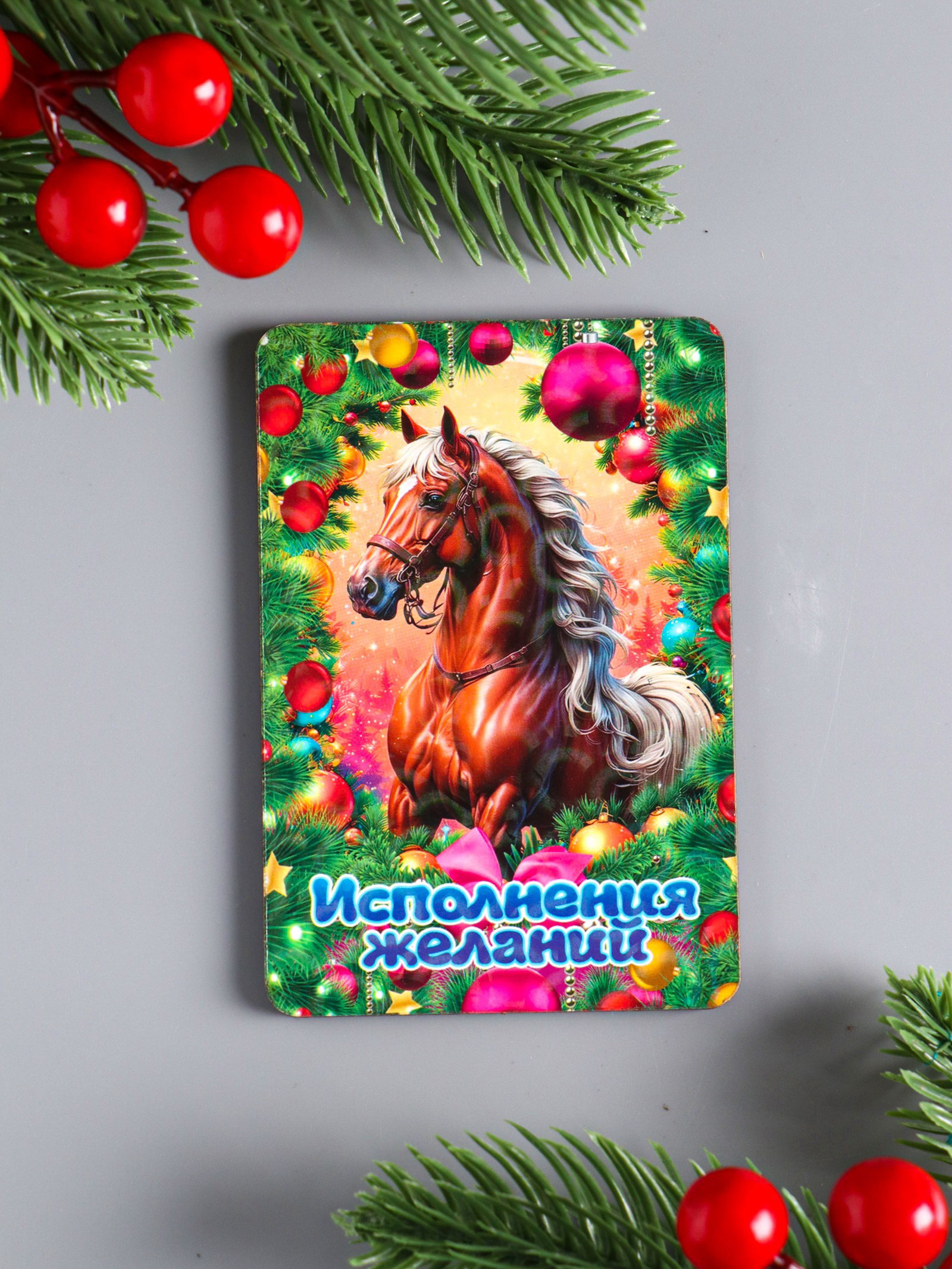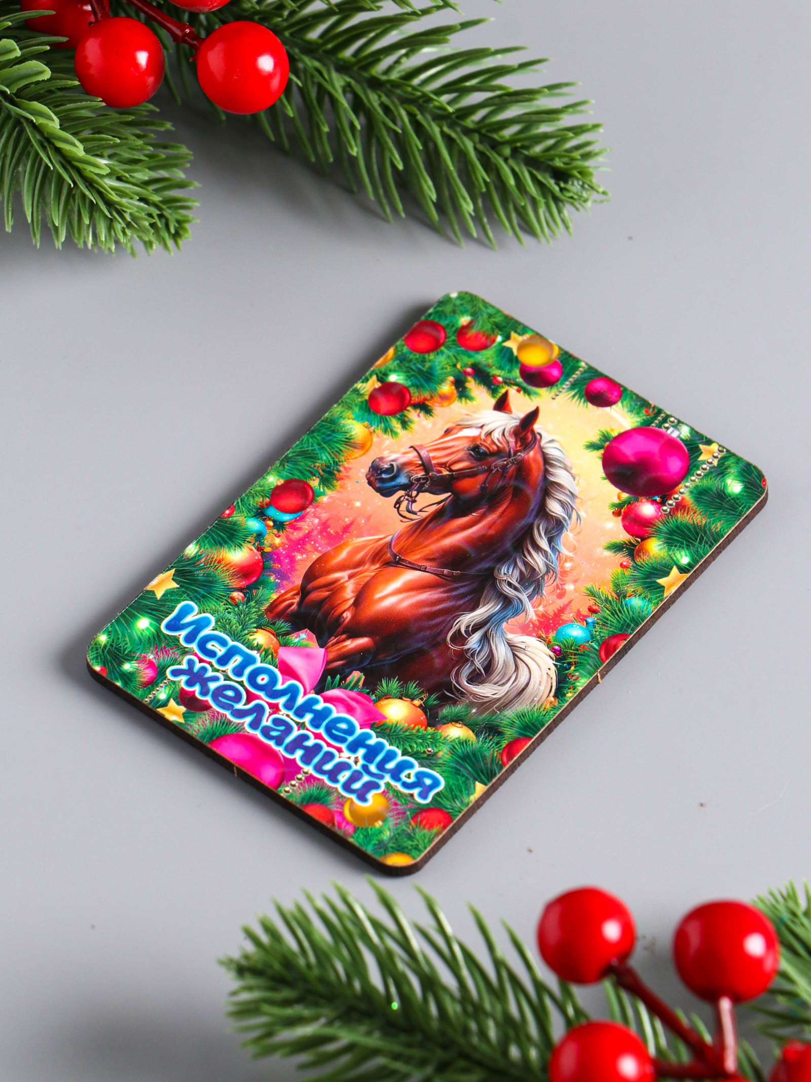 Магнит на холодильник "Новогодняя лошадь. Исполнения желаний", 9.5x6.5 см, Дарим Красиво, Россия