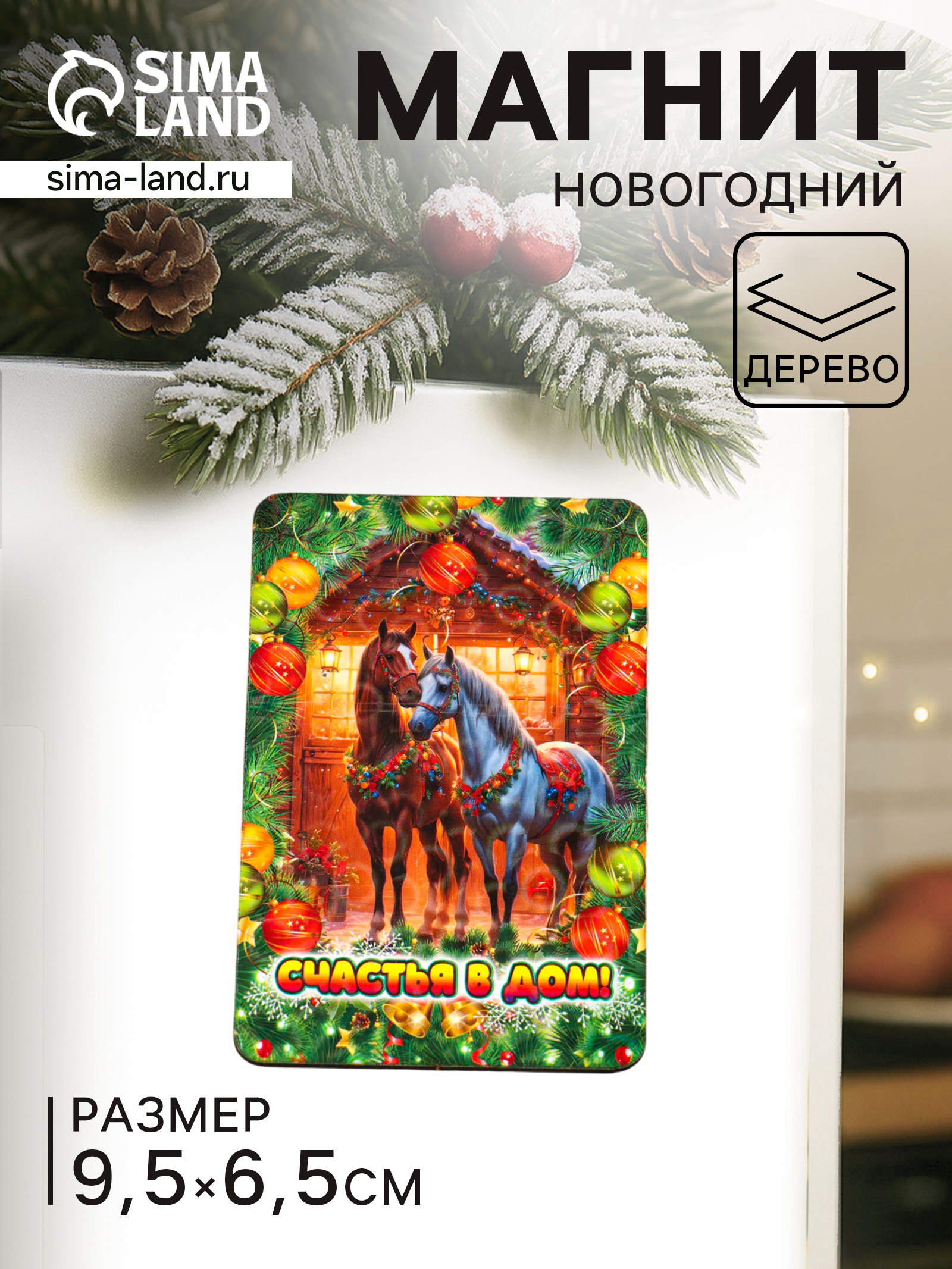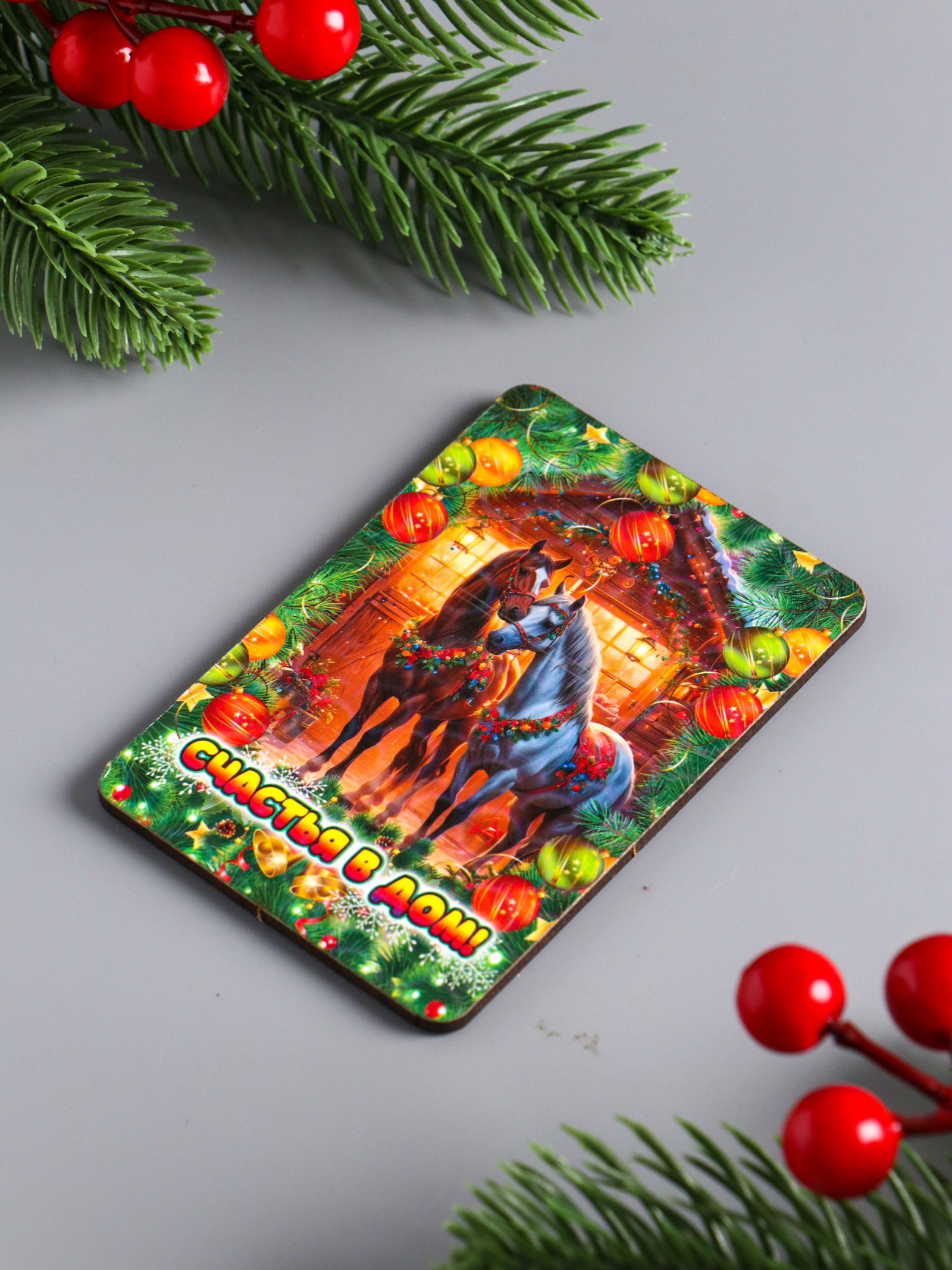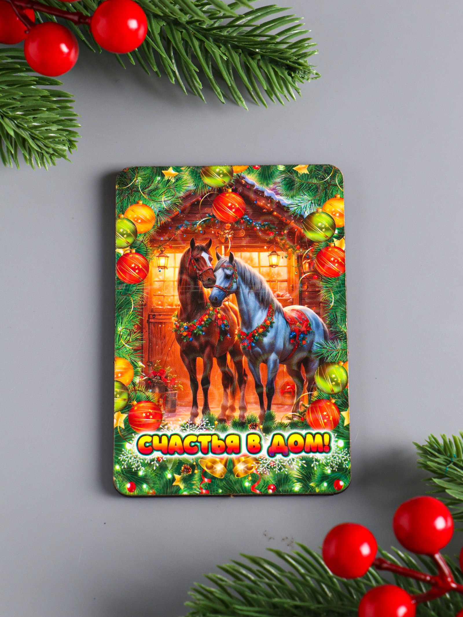 Магнит на холодильник "Новогодняя лошадь. Счастья в дом", 9.5x6.5 см, Дарим Красиво, Россия