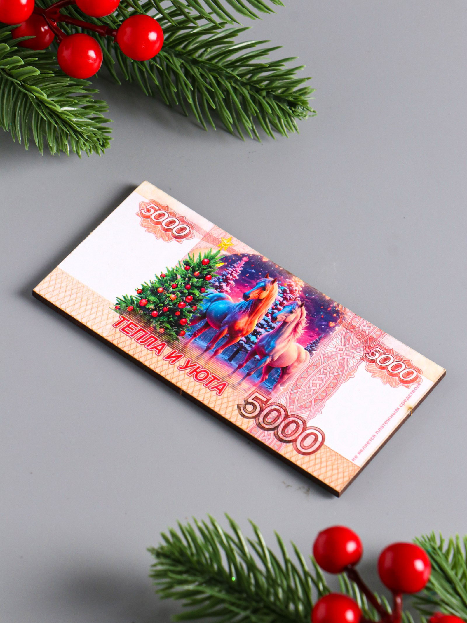 Магнит на холодильник "Новогодний конь на купюре 5000 Тепла и уюта", 12x6 см, Дарим Красиво, Россия
