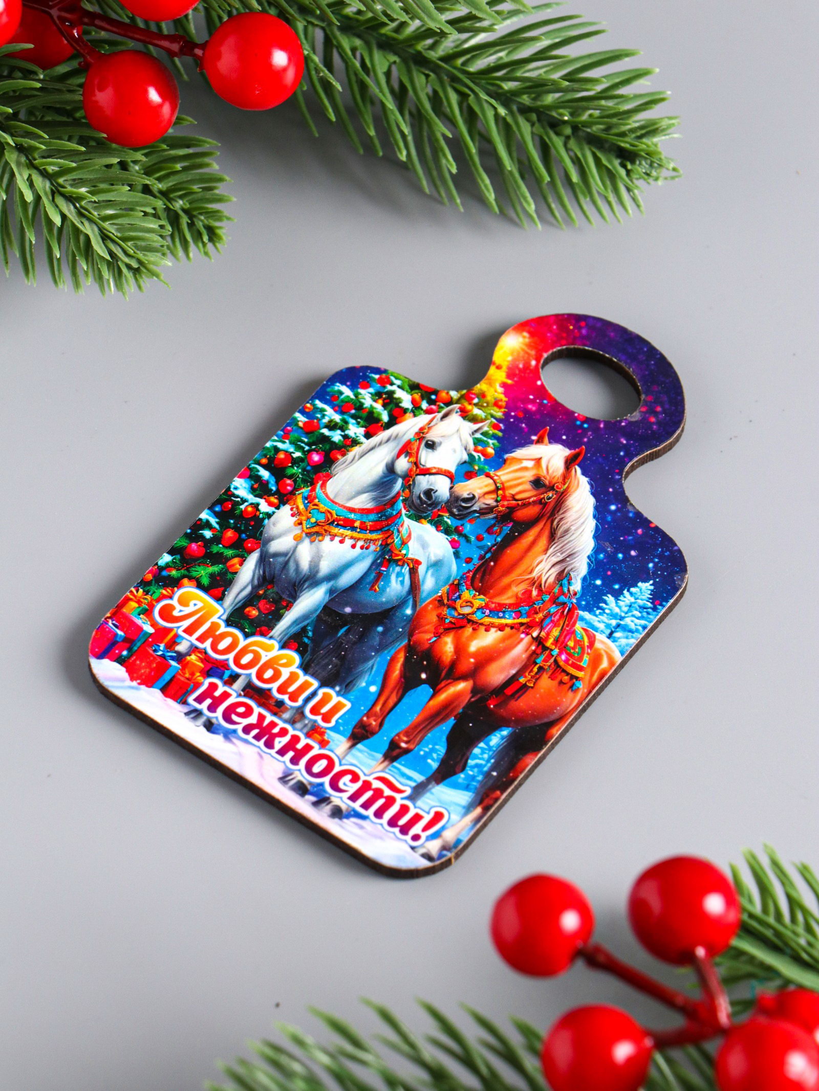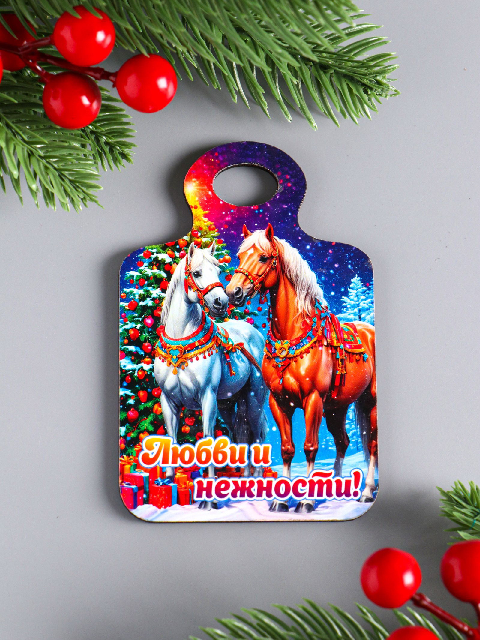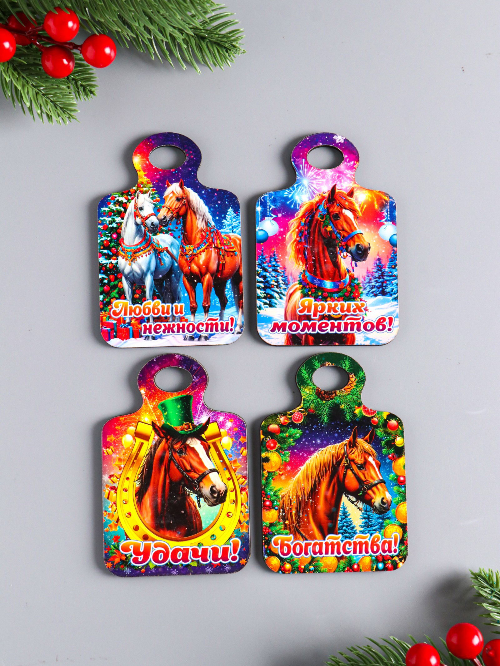 Набор магнитов на холодильник 4 шт., "Доска разделочная с конём: Богатства, удачи, любви и нежности, ярких моментов", Дарим Красиво, Россия