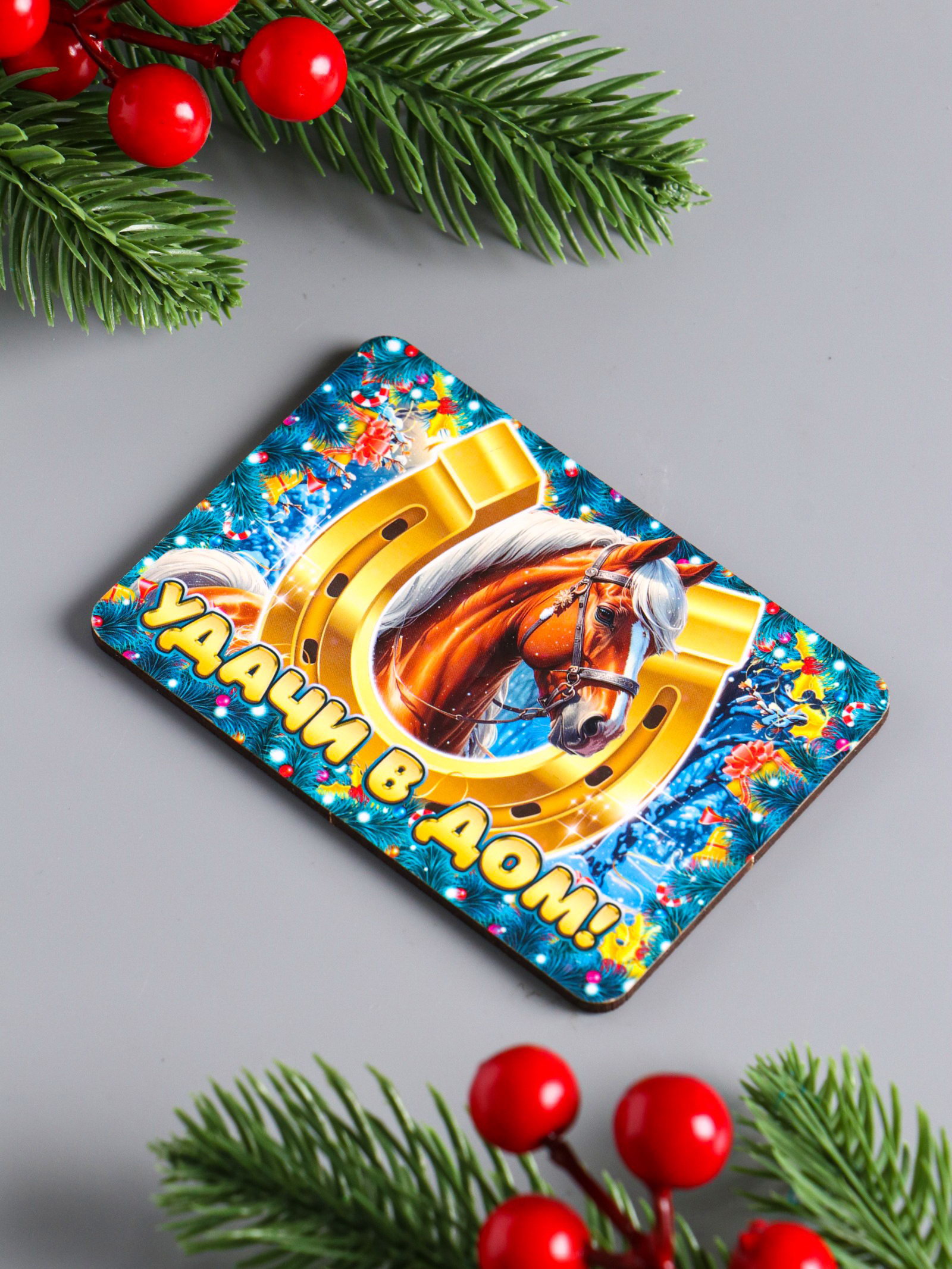 Магнит на холодильник "Новогодняя лошадь. Удачи в дом", 9.5x6.5 см, Дарим Красиво, Россия