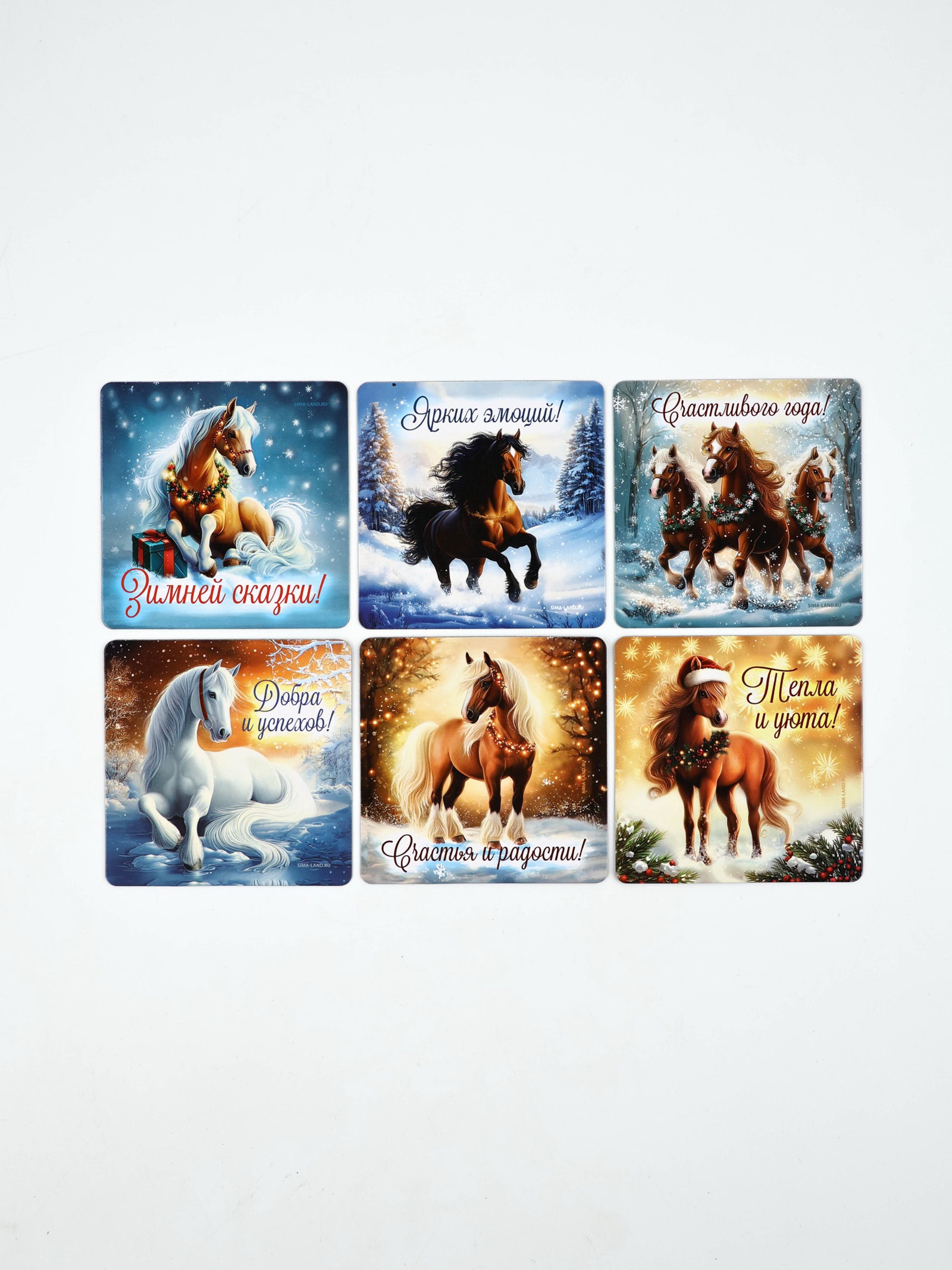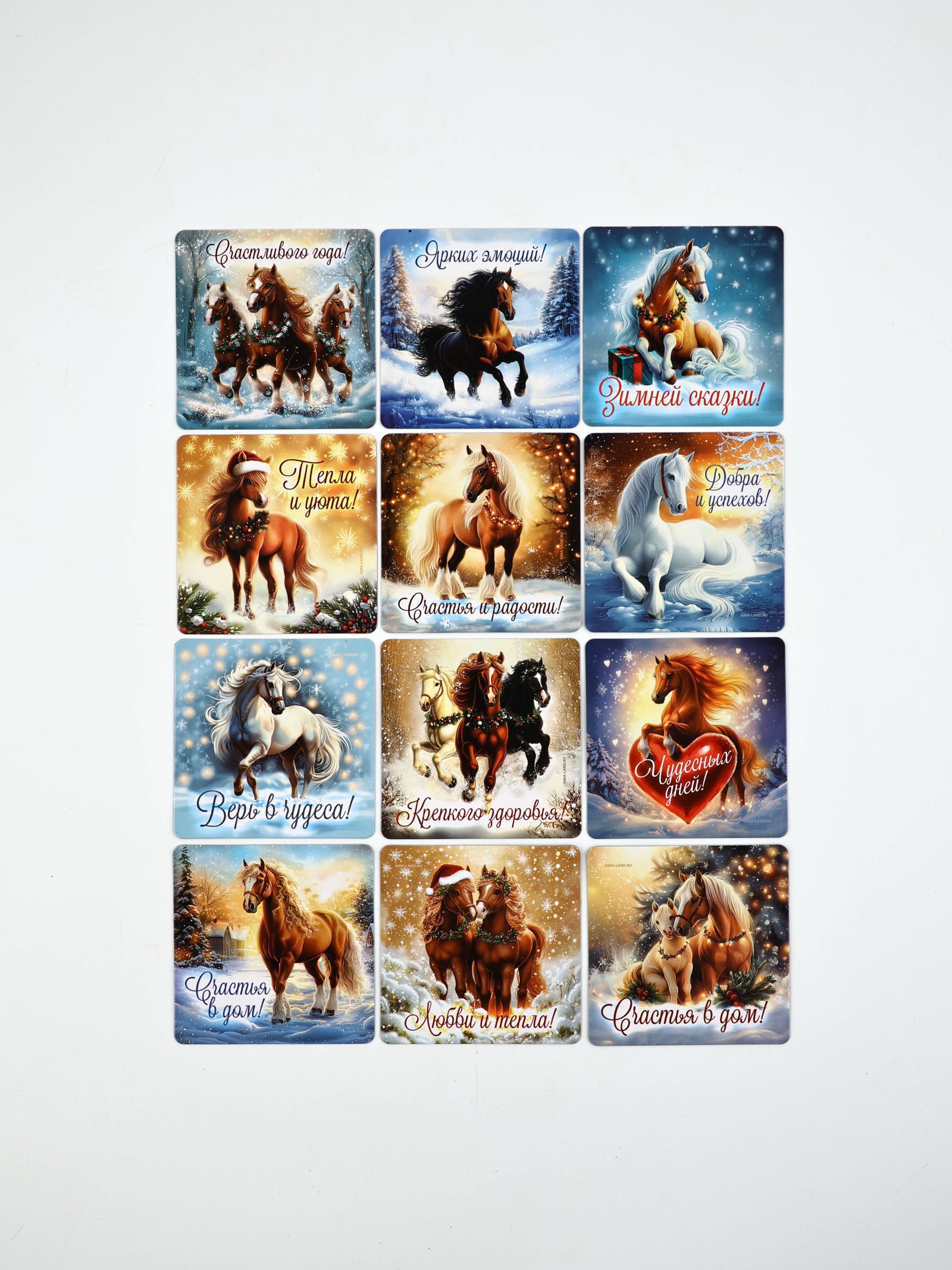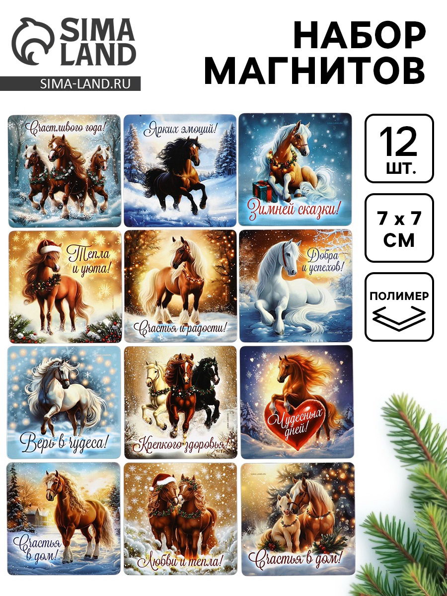 Набор магнитов полимер новогодних "Милые Лошадки" 7x7 см 12 шт., 7x7x3.6 см., Сима-ленд, Китай