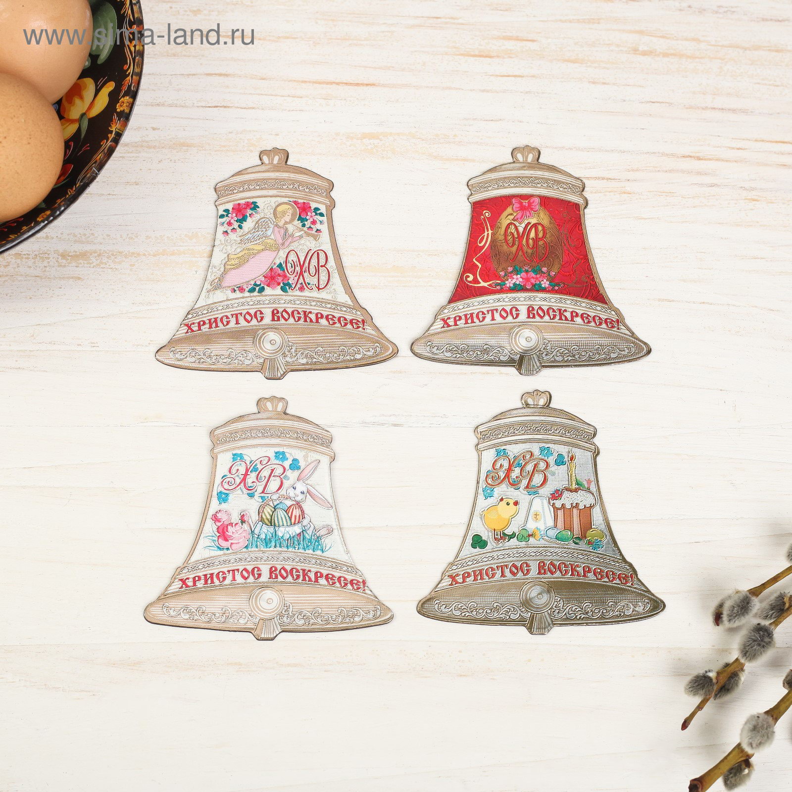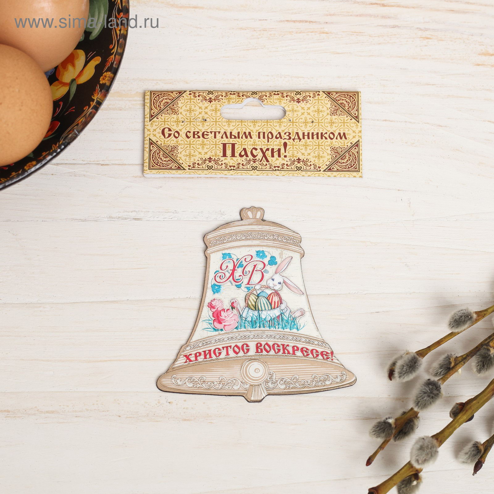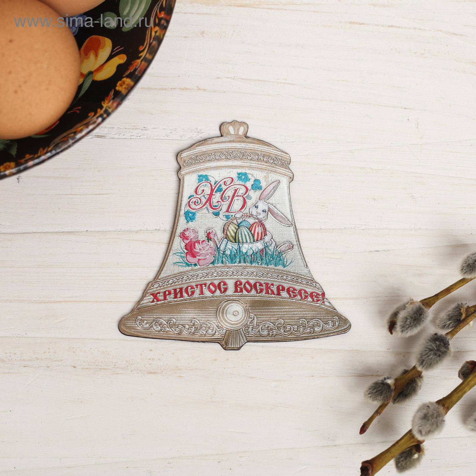 Пасхальный магнит-колокольчик, МИКС, 7.5x8x0.2 см., Сима-ленд, Китай