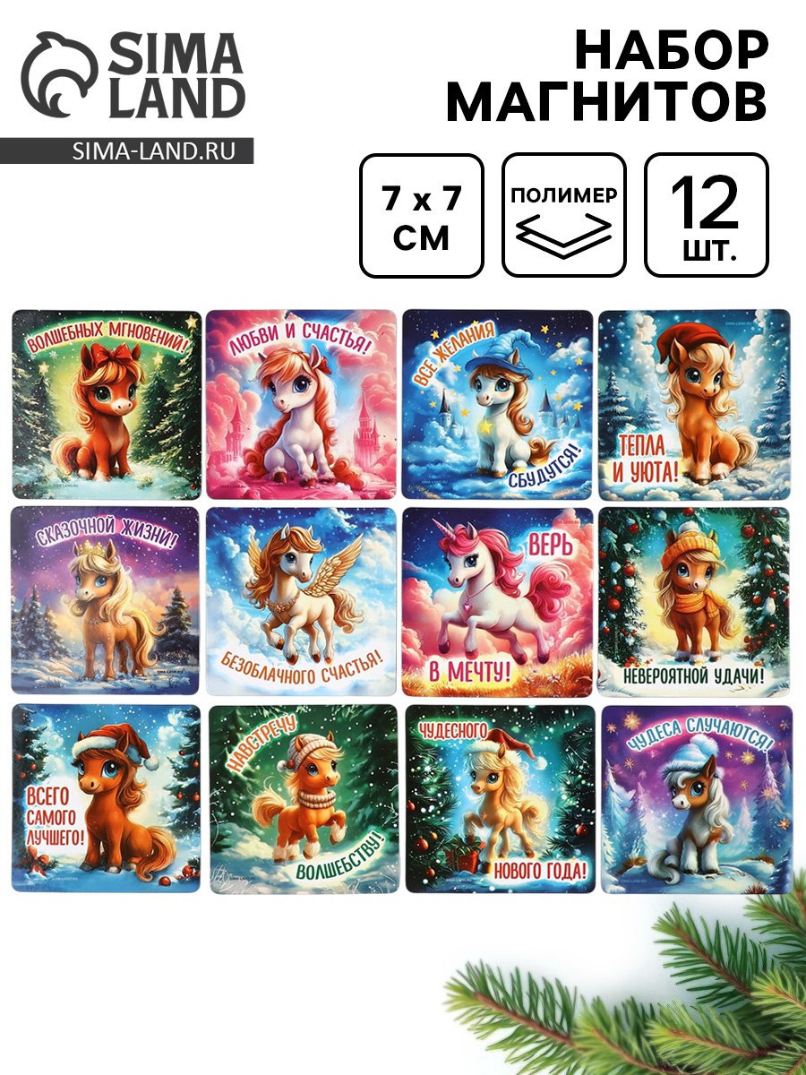 Набор магнитов новогодних "Волшебный Новый Год" полимер 7x7 см 12 шт., 7x7x3.6 см., Сима-ленд, Китай