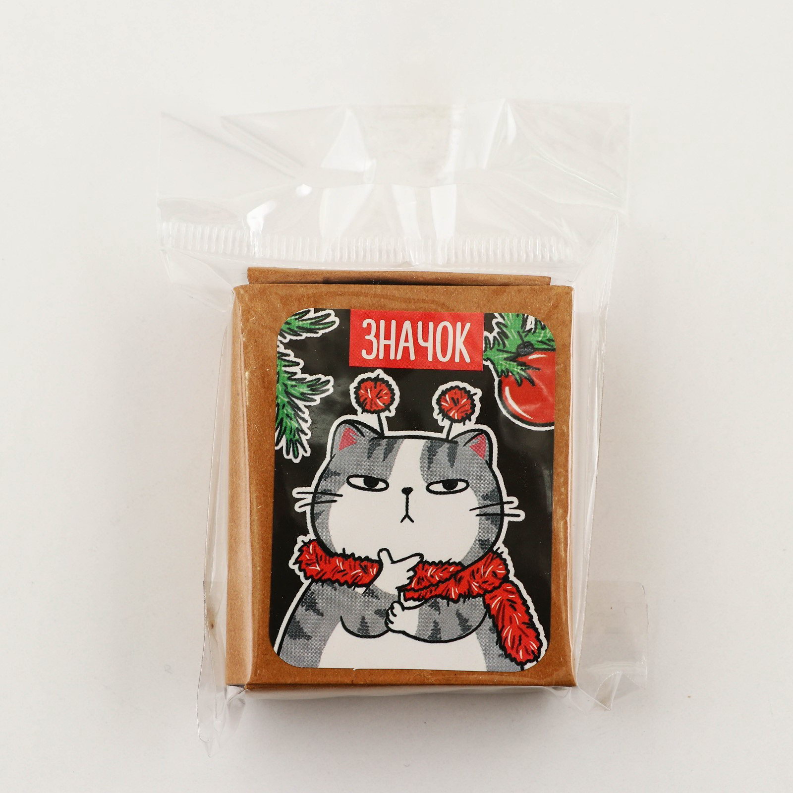 Новогодний значок в коробочке "Новый год: Котик" 3.1 x 3.7 см, 3x2.7x0.5 см., Сима-ленд, Китай