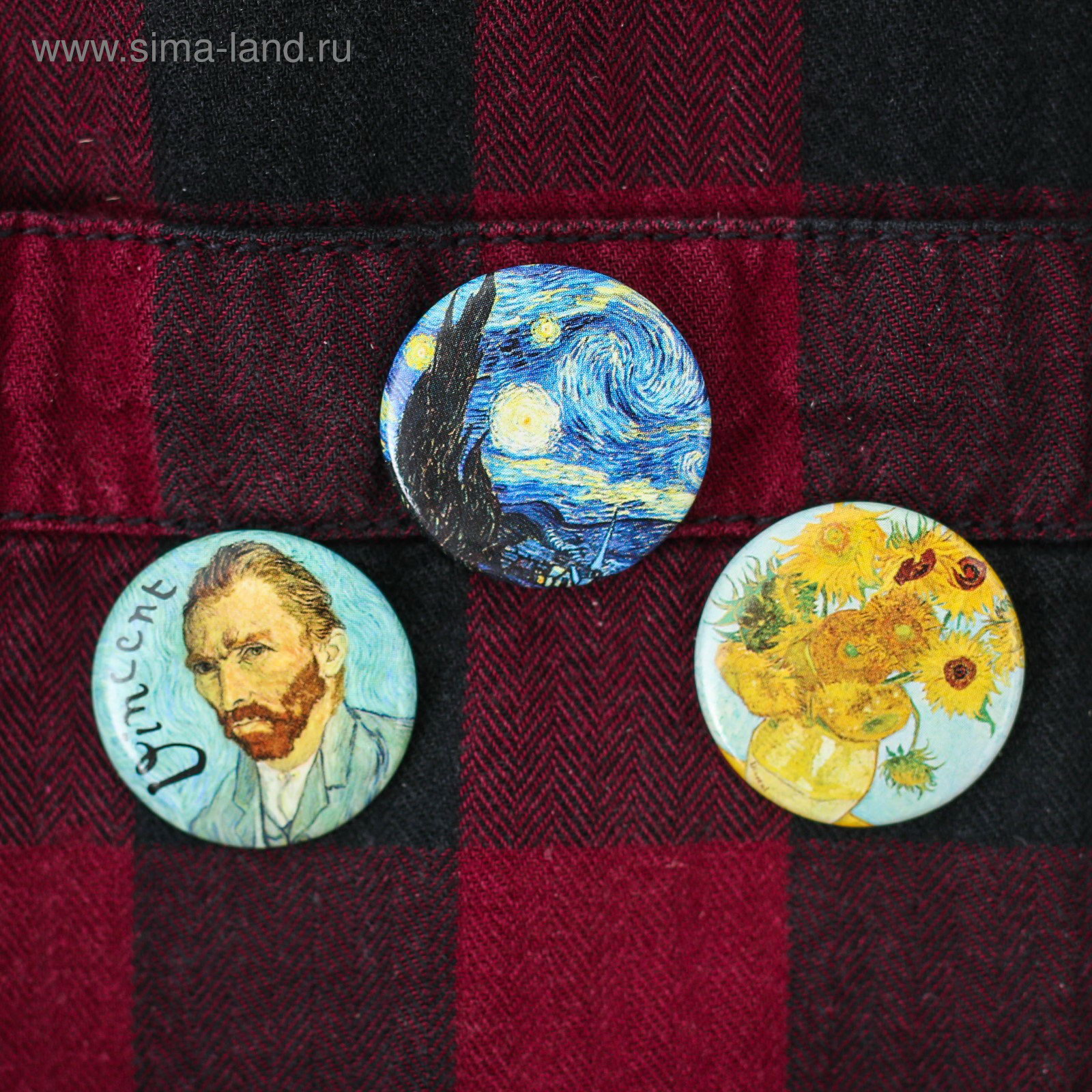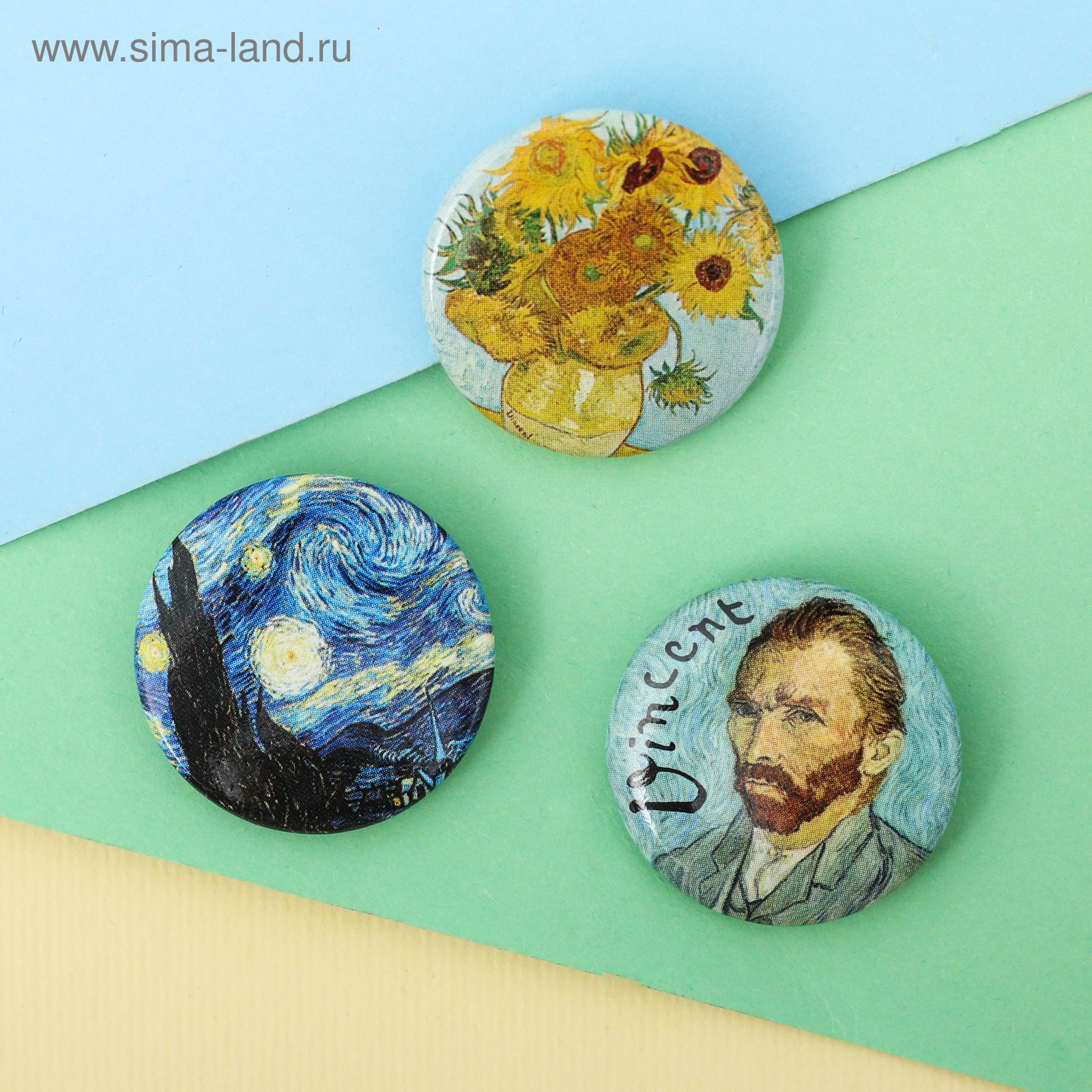 Значок"Ван Гог", d=25 мм, набор 3 шт., 2.5х2.5х11.5 см., Сима-ленд, Россия