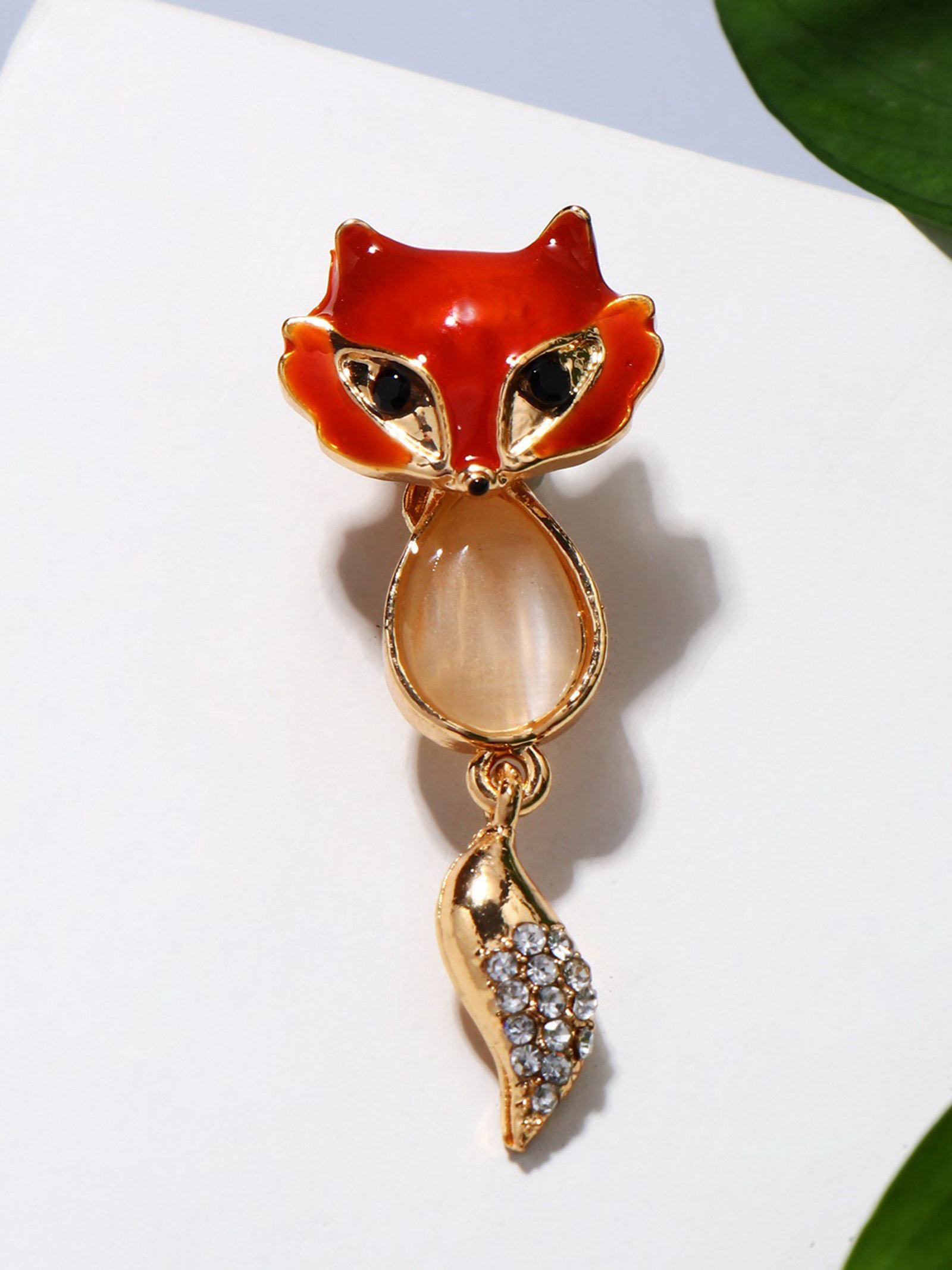 Значок "Лисичка" с подвижным хвостиком, цветной в золоте, 1.5x4x0.5 см., QF, Китай