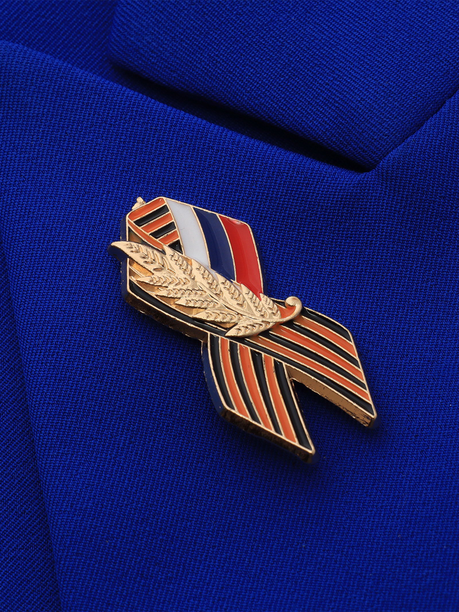 Значок "Георгиевская лента" с флагом России, цветной в золоте, 1.5x3.3x1 см., QF, Китай
