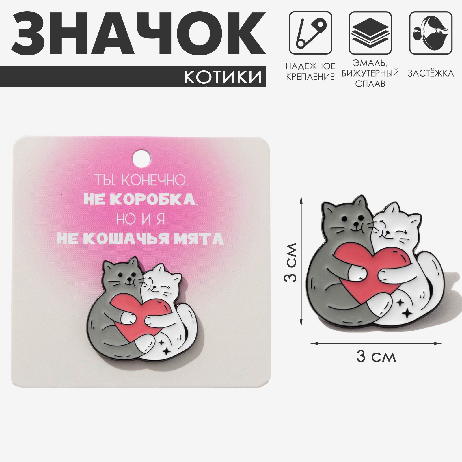 Значок "Котики" влюблённые, цветной в чёрном металле, 3x3x0.2 см., QF, Китай