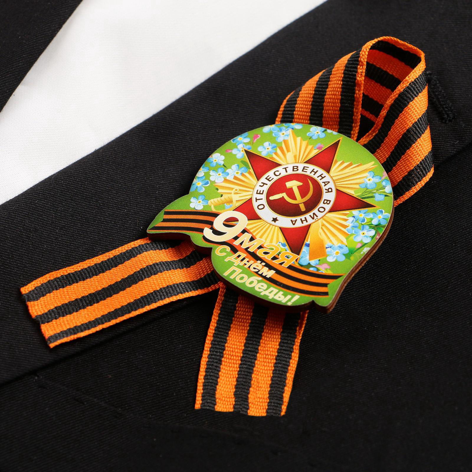 Значок деревянный "9 Мая", с георгиевской лентой, 7 см., Сима-ленд, Россия