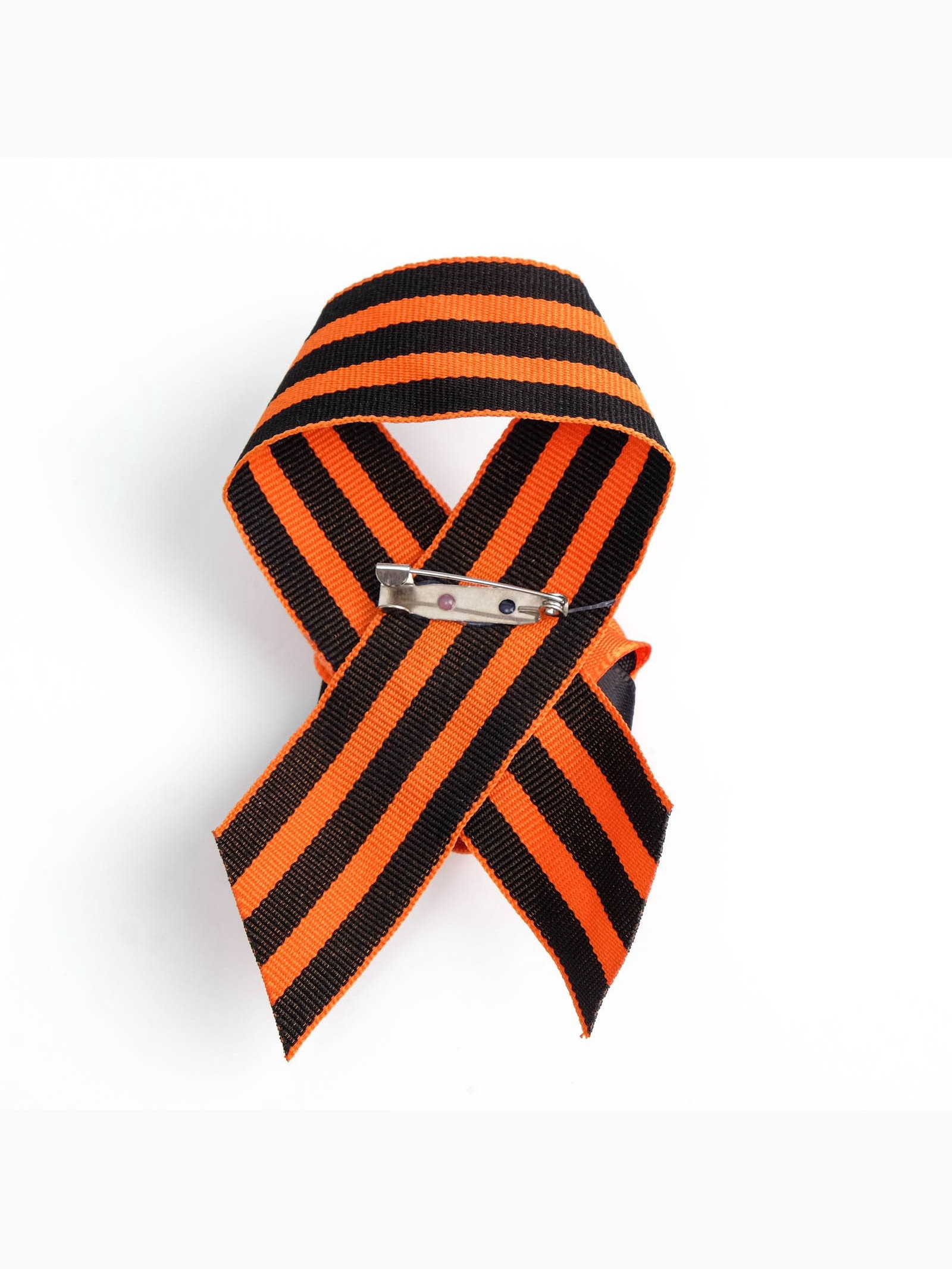 Георгиевская лента на 9 мая "Вечный огонь", с булавкой и цветком, 6x9.5x2 см., Китай