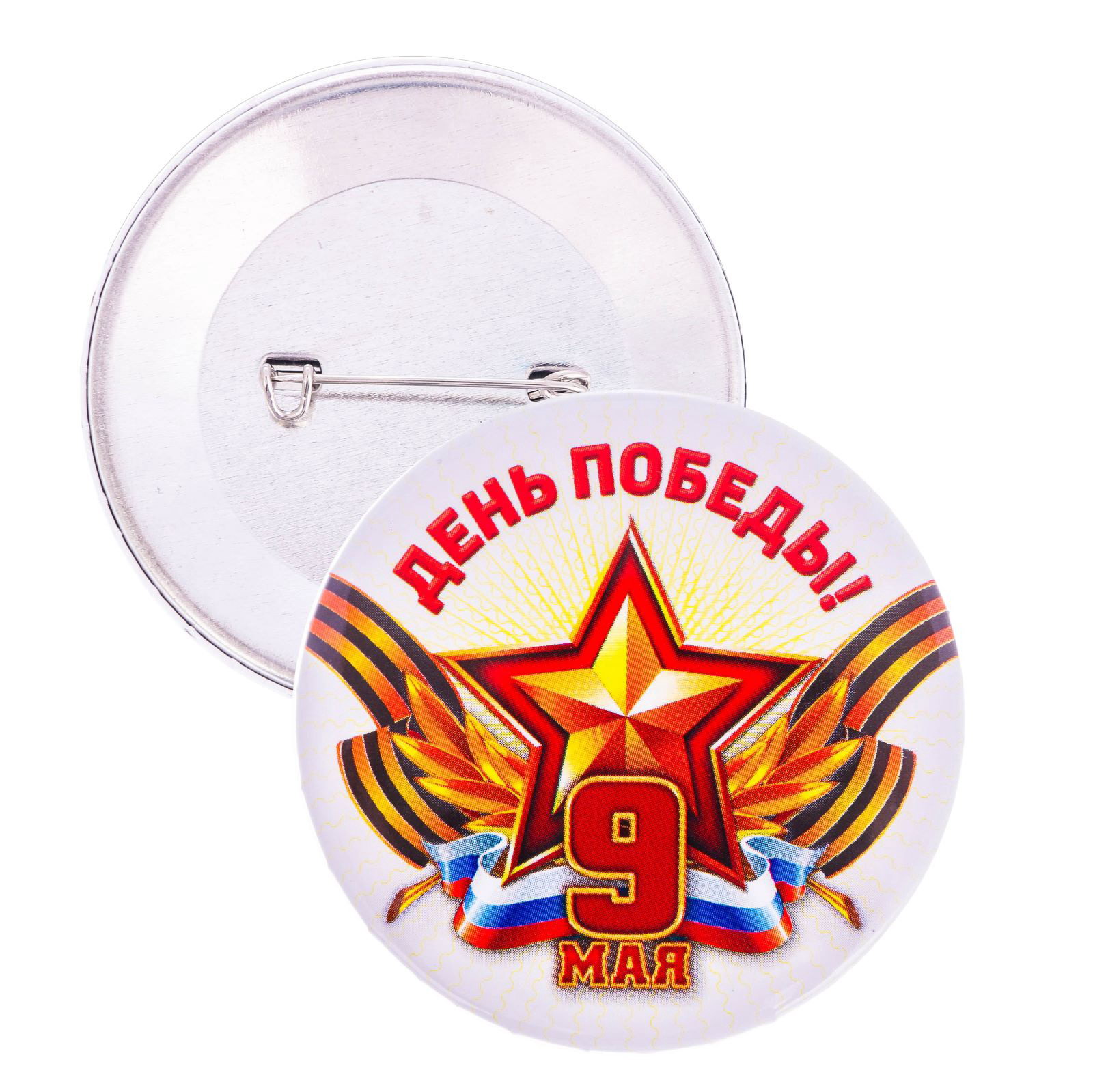 Значок закатной "День Победы! 9 Мая", триколор, d=5.6 см, 5.6х5.6х0.5 см., Сима-ленд, Россия