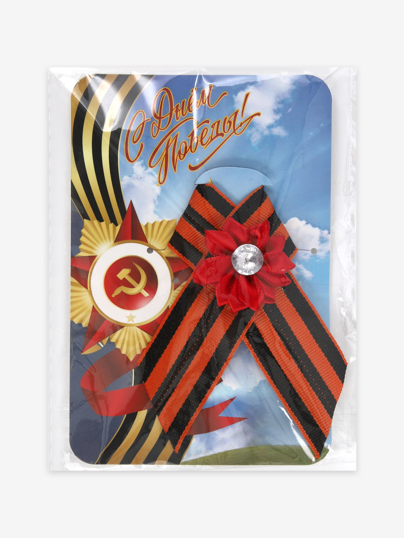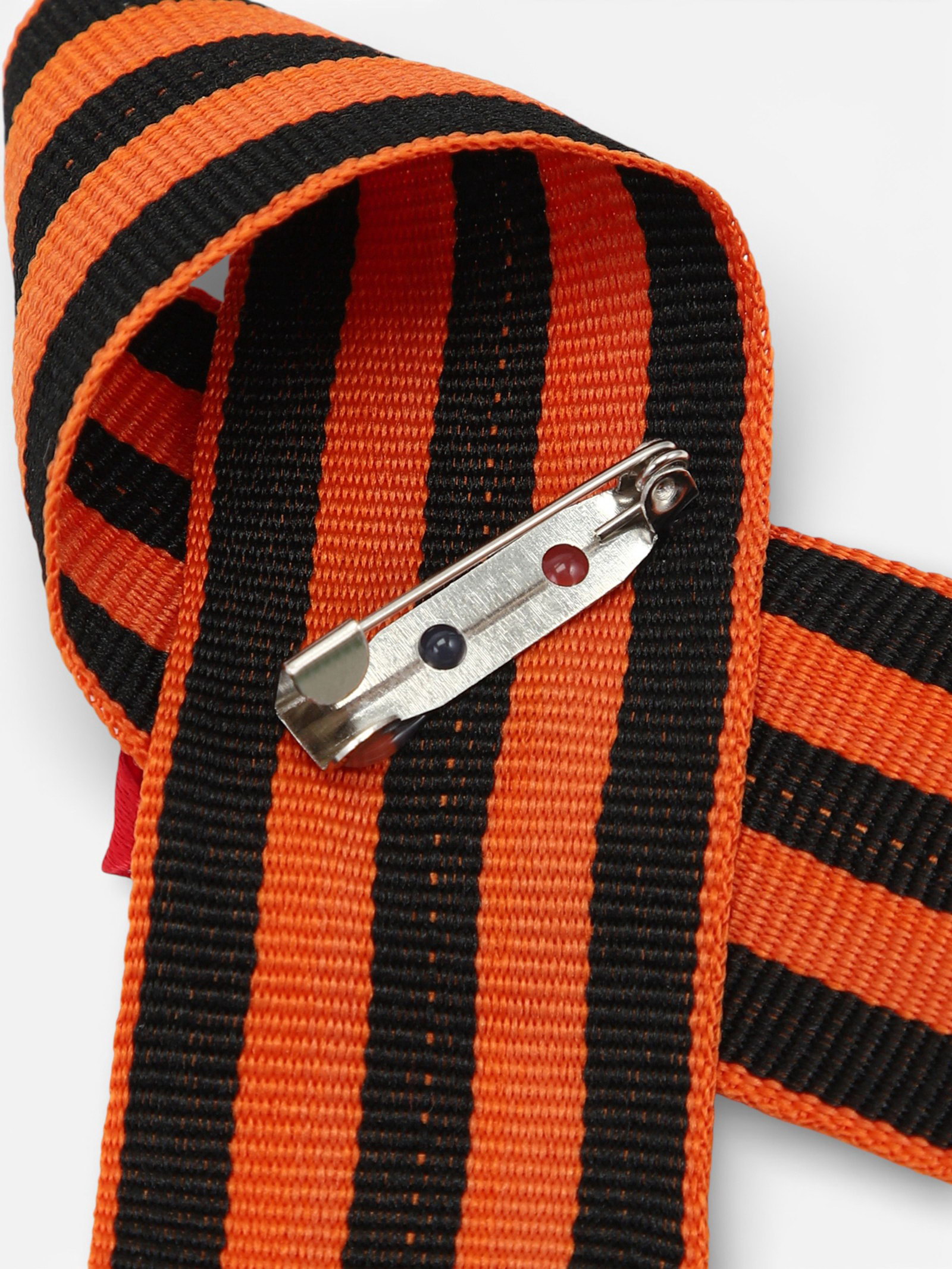 Георгиевская лента на 9 мая "Красная звезда", с булавкой и красным цветком, 10x15x1 см., Китай