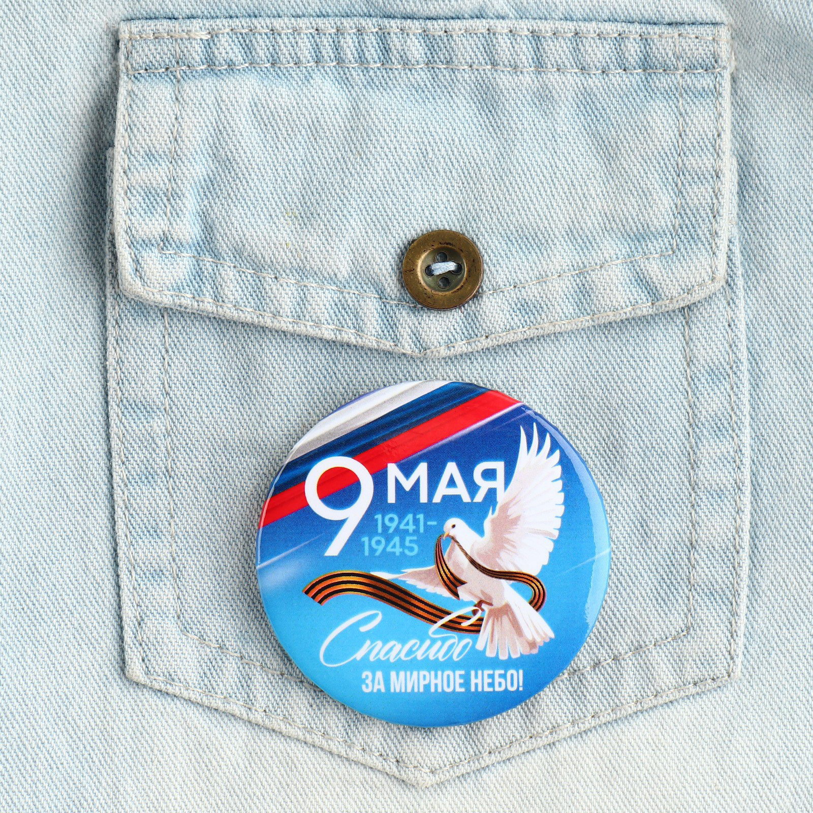Значок закатной на День Победы "9 мая Спасибо за мирное небо", d = 5.6 см, 5.6 см., Сима-ленд, Россия