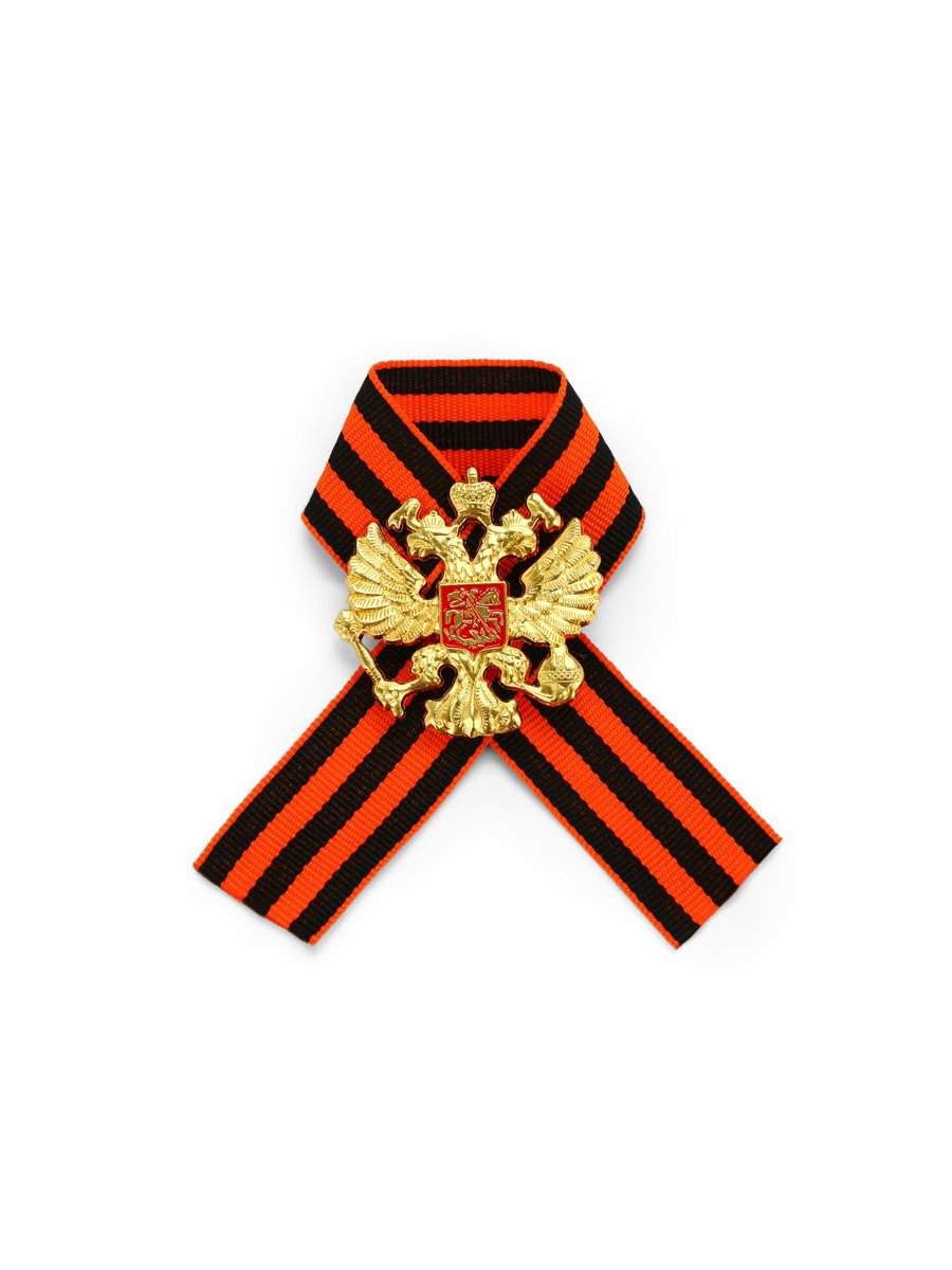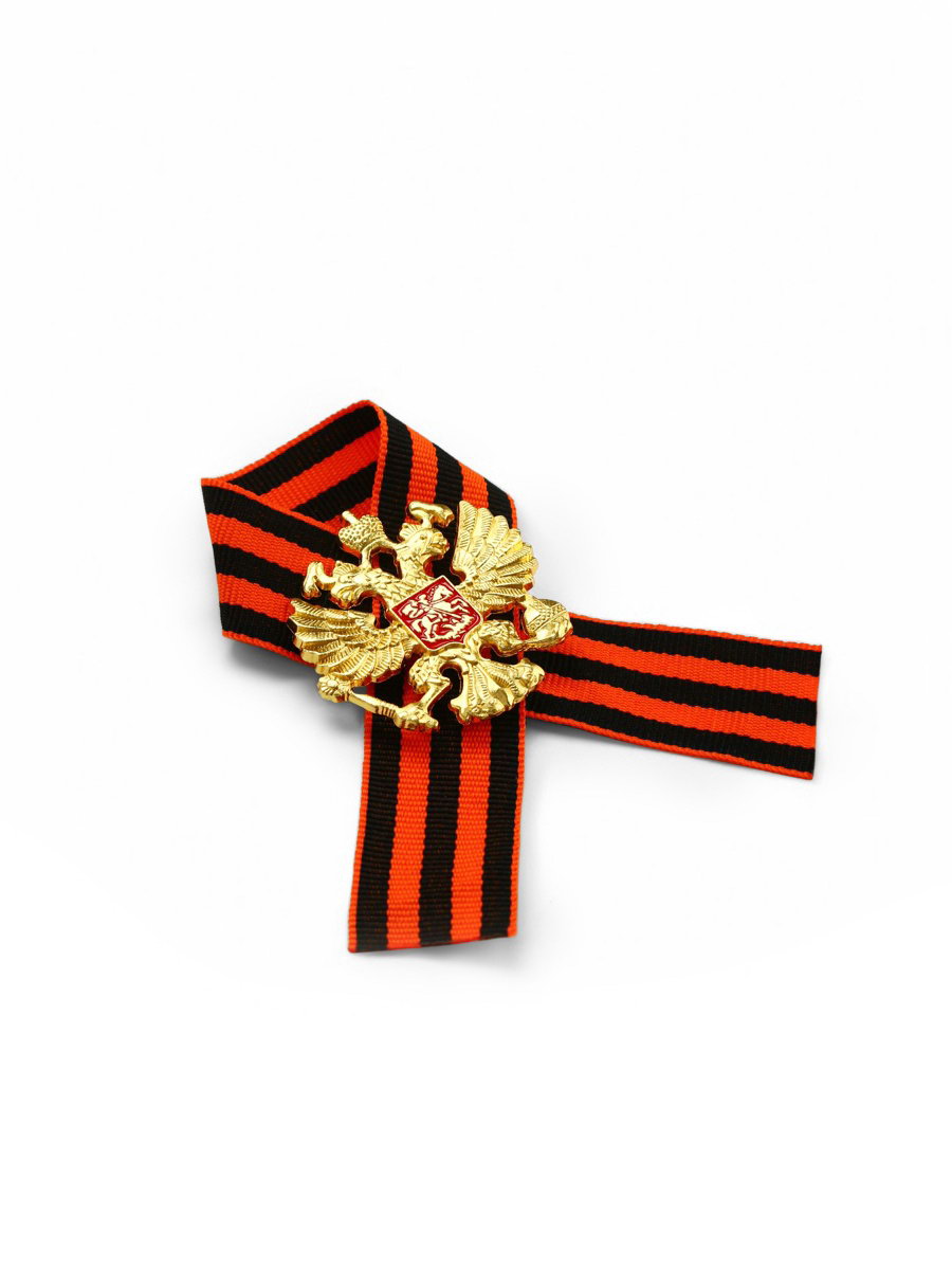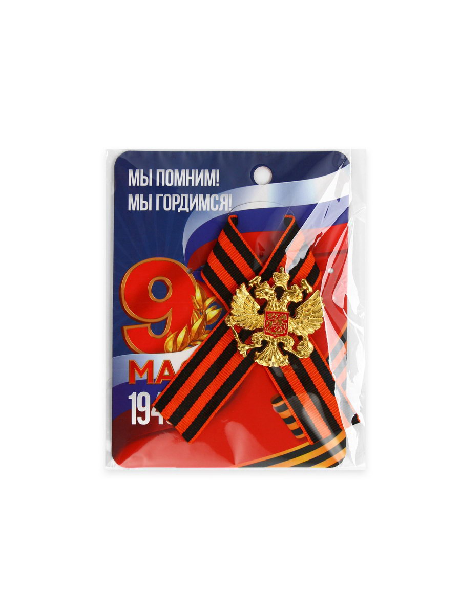 Георгиевская лента на 9 мая "Мы помним, гордимся", 10.5x14 см, металлический значок, 5.5x9x1 см., Сима-ленд, Китай