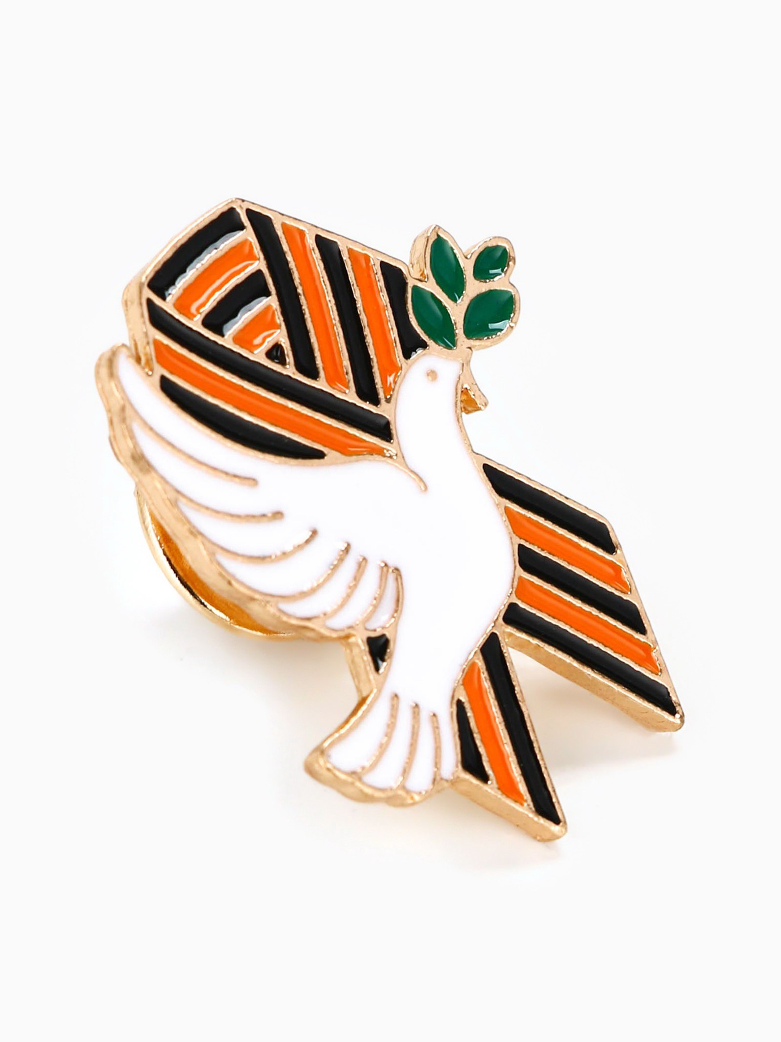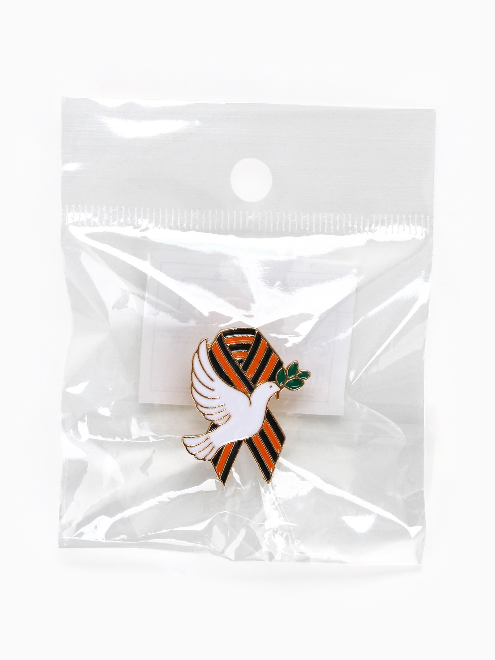 Значок на 9 мая с георгиевской лентой "Голубь мира", 2.5x3 см, 3x2.5x1 см., Сима-ленд, Китай