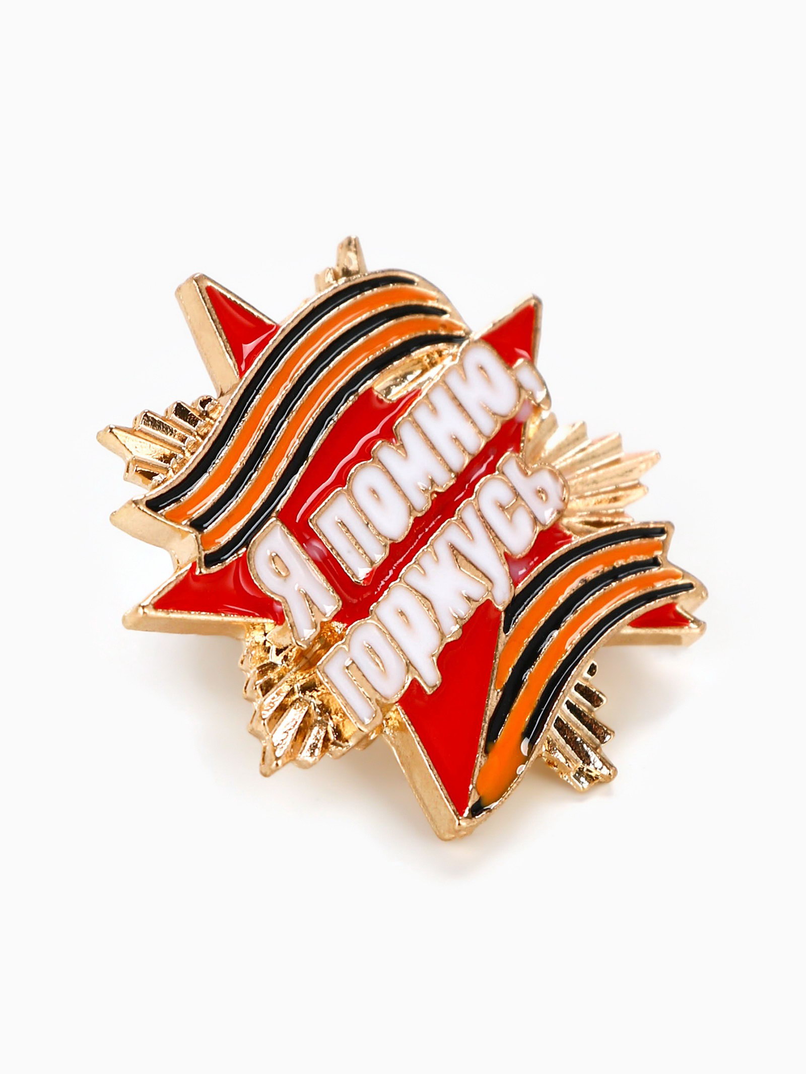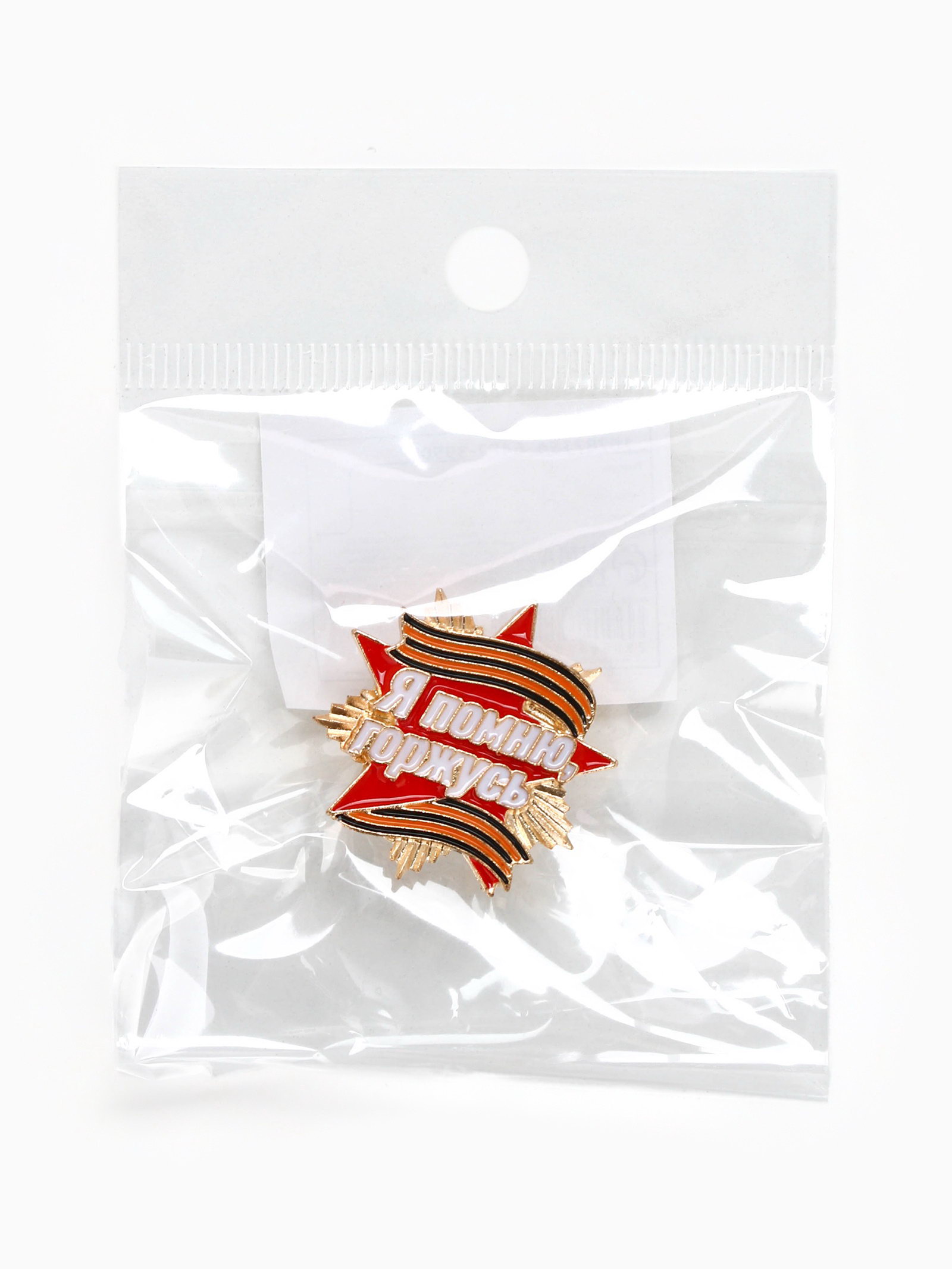 Значок на 9 мая с георгиевской лентой "Я помню, горжусь", 2.8x3 см, 3x2.8x1 см., Сима-ленд, Китай