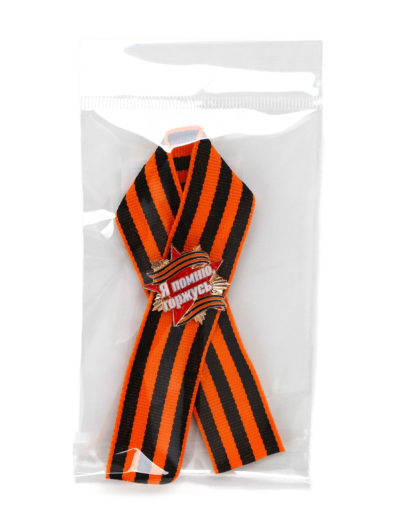 Георгиевская лента со значком на 9 мая "Я помню, горжусь", 5x10x1 см., Сима-ленд, Китай