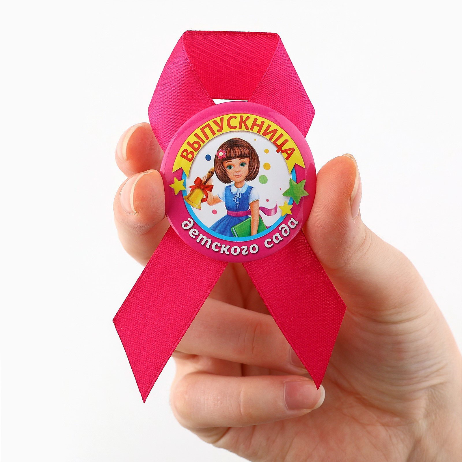 Значок с лентой "Выпускница детского сада", диам 4.5 см, набор 5 шт, 4.5х4.5х0.5 см., Китай