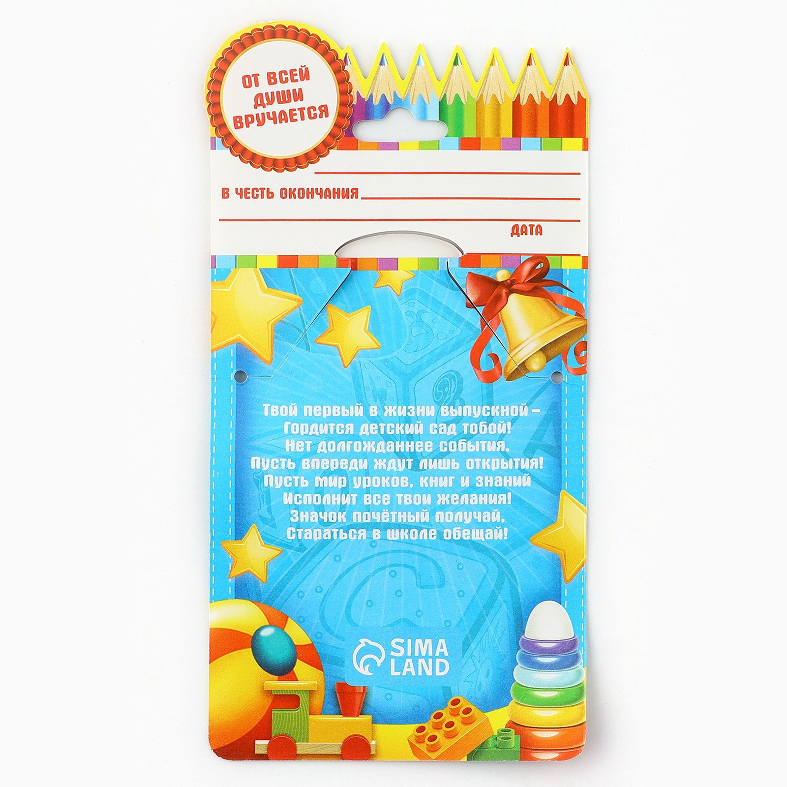Размер упаковки: 9 x 18 x 3.5 см. tnved: 7117900000 Запрет реализации по сегментам: 00000000534 Адресат: Выпускнику детского сада Цвет: Разноцветный Набор: Нет Наличие символики РФ: Нет Тематика праздника: Выпускной в детском саду | ||