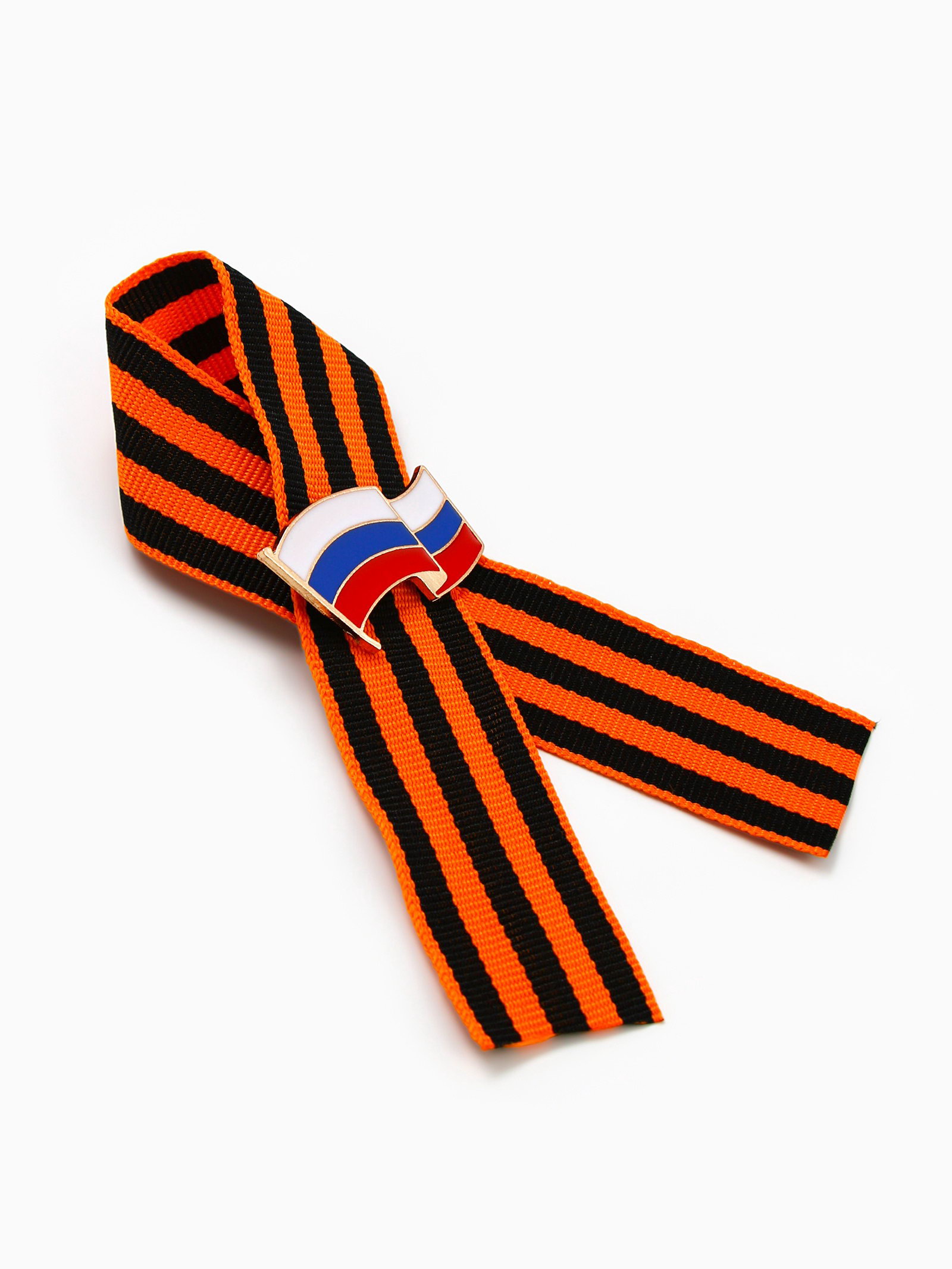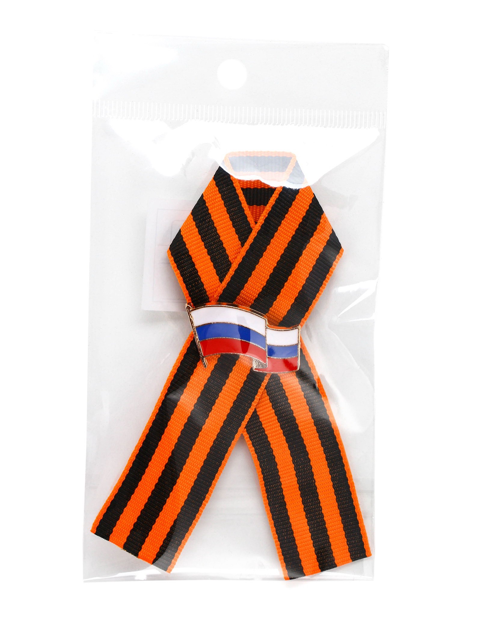Георгиевская лента со значком на 9 мая "Флаг России", 5x10x1 см., Сима-ленд, Китай