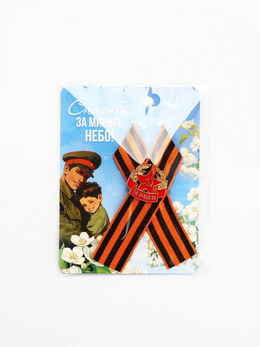 Георгиевская лента с металлическим значком "9 мая", 5.5x9x1 см., Сима-ленд, Китай