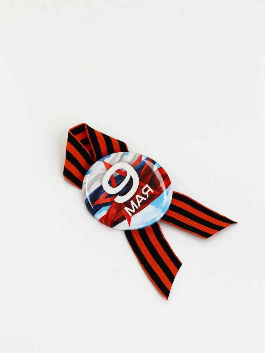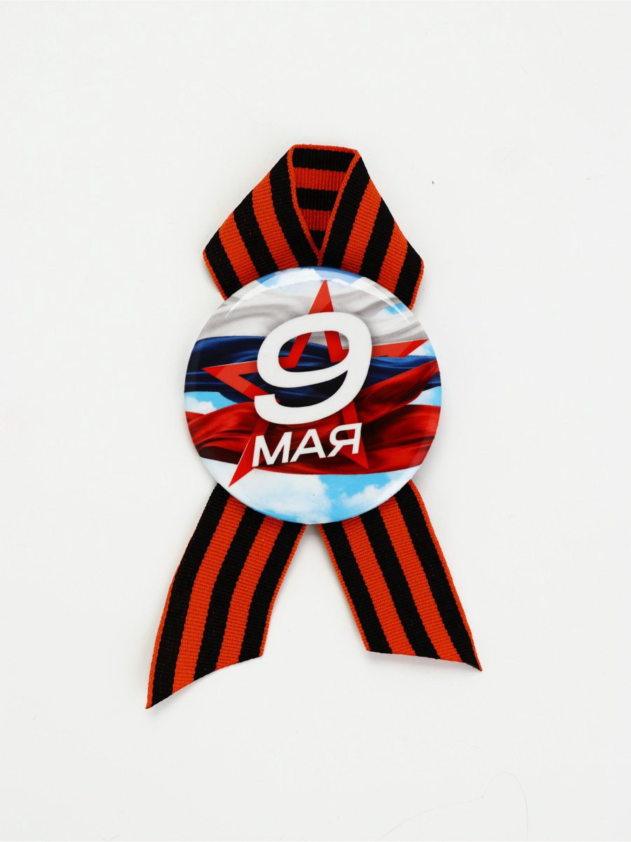Значок закатной с георгиевской лентой на День Победы "9 Мая", d=5.6 см, Сима-ленд, Россия