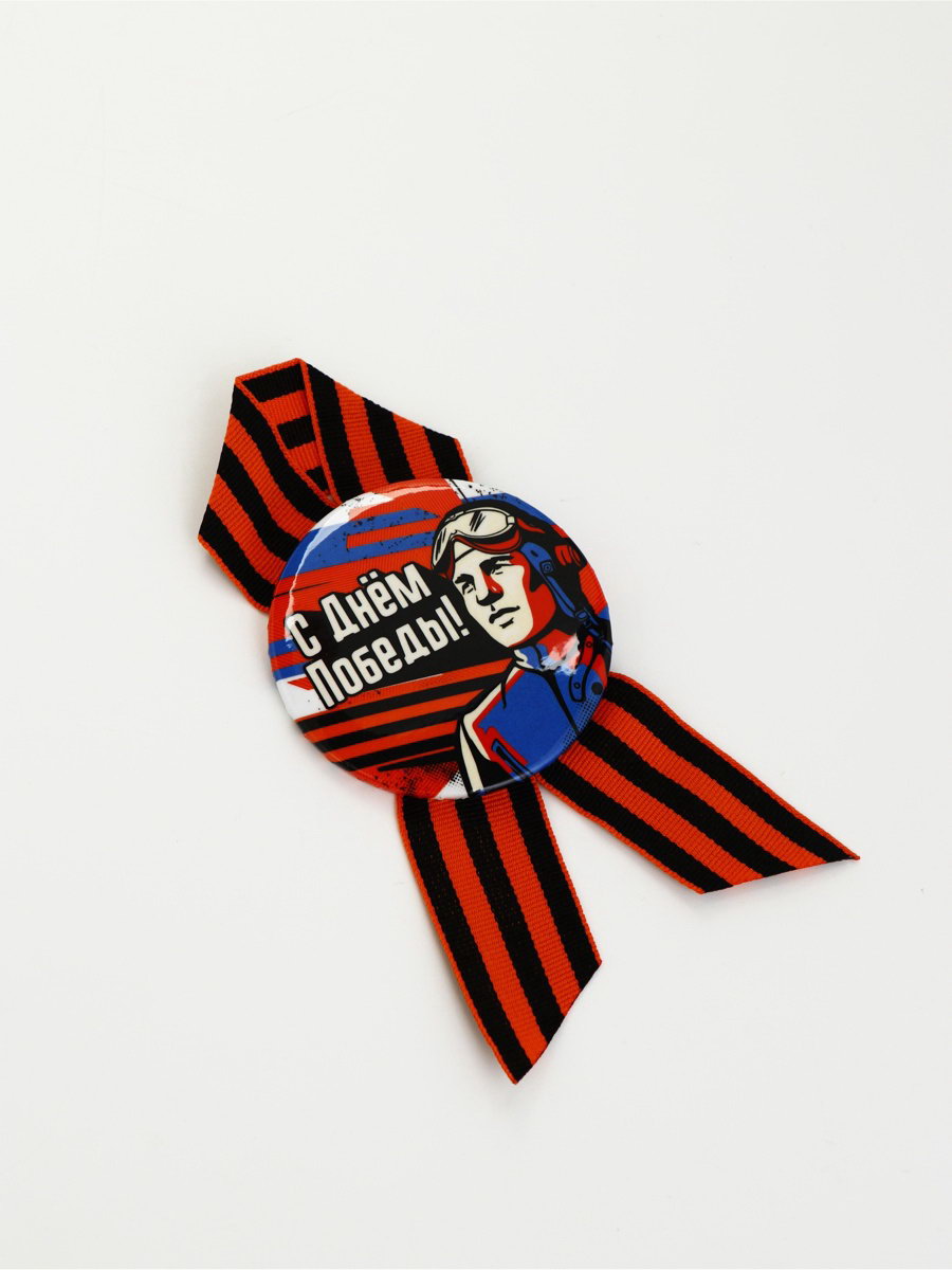 Значок закатной с георгиевской лентой на 9 Мая "С Днём Победы!", d=5.6 см, Сима-ленд, Россия