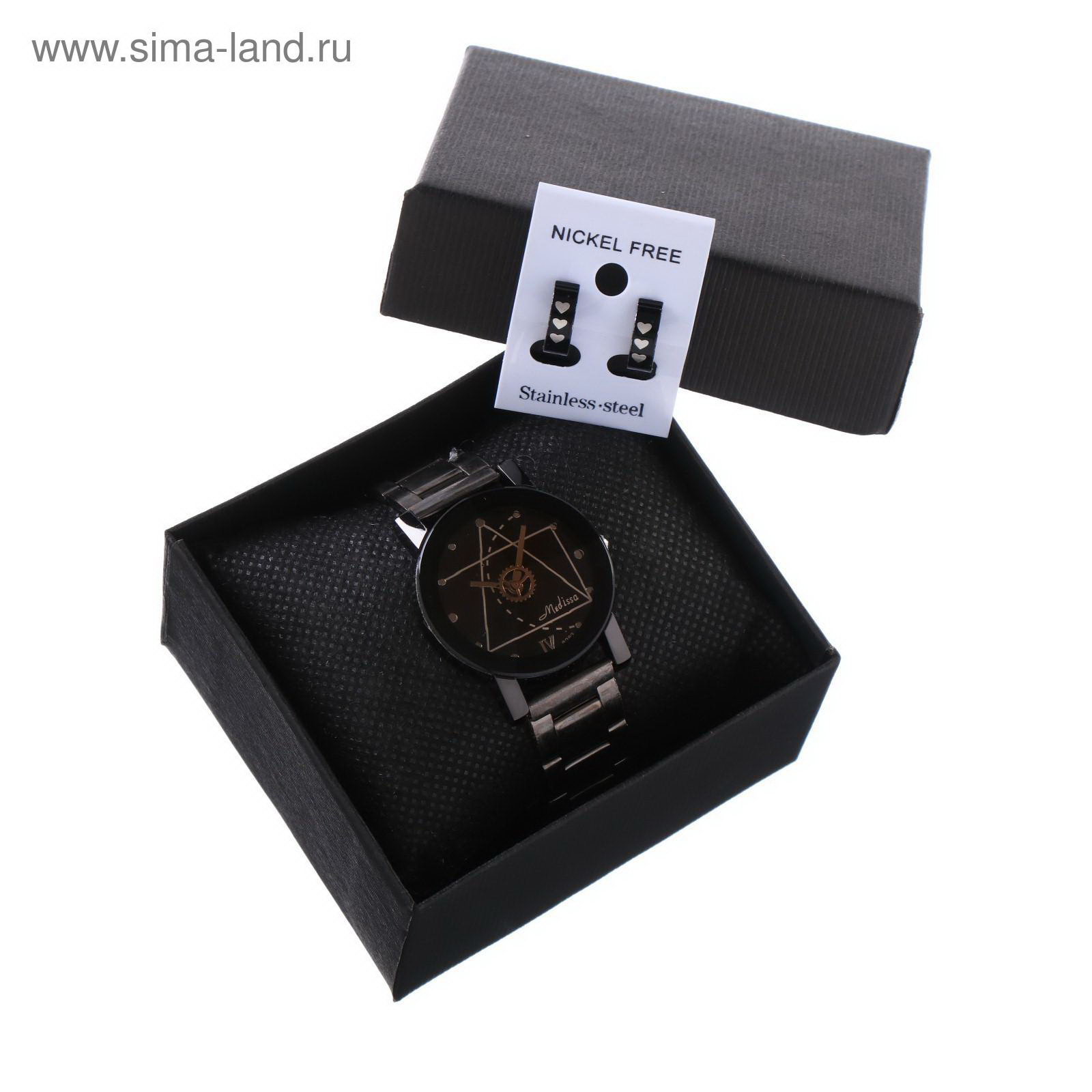 Подарочный набор 2 в 1 "Medissa": наручные часы, d=3.2 см, серьги, Китай