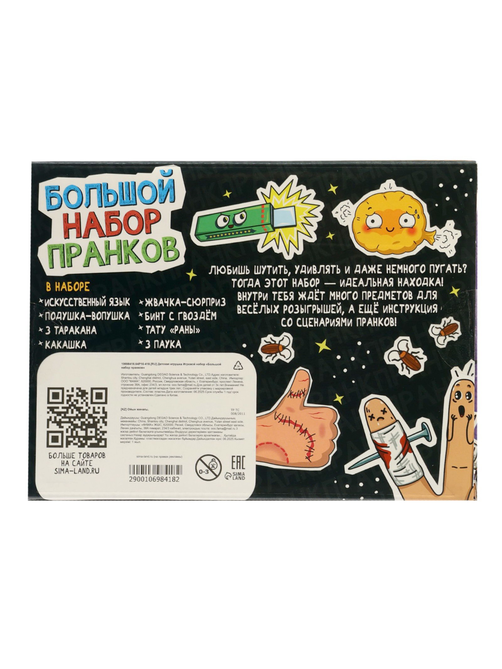 Вид: Гвоздь, Животные, насекомые, Животные, насекомые, Раны, шрамы, Части тела, Части тела Размер упаковки: 12 x 5.5 x 16 см. tnved: 9503007000 Игровой набор "Большой набор пранков" станет отличным выбором для тех, кто любит весело проводить время и удивлять друзей. С этим комплектом можно устроить целое шоу розыгрышей, которое надолго запомнится окружающим. В наборе вы найдёте 21 весёлый пранк, которые помогут создать атмосферу смеха и неожиданностей. Особенности набора