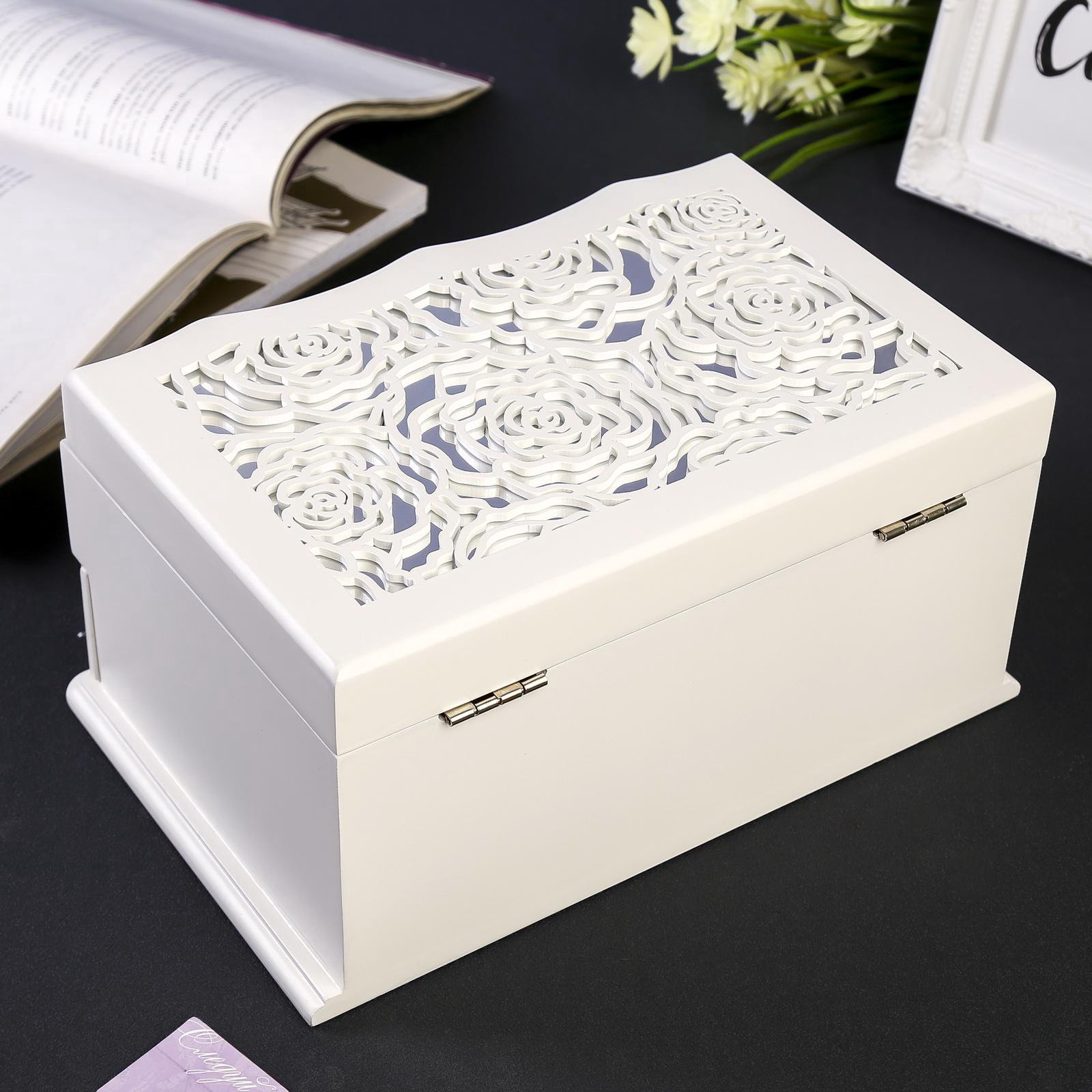 Шкатулка для украшений "Розы", дерево, белая, 12.5x16x25.5 см, 16x25.5x12.5 см., Китай