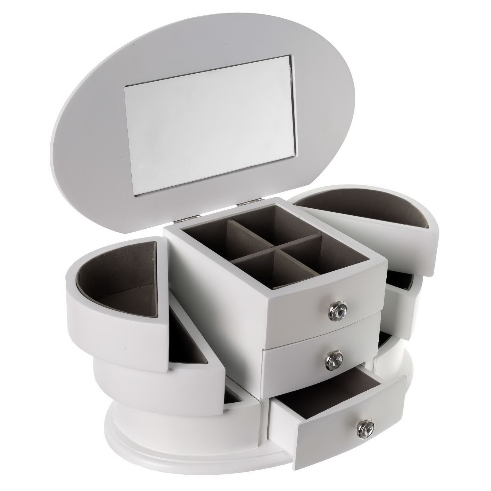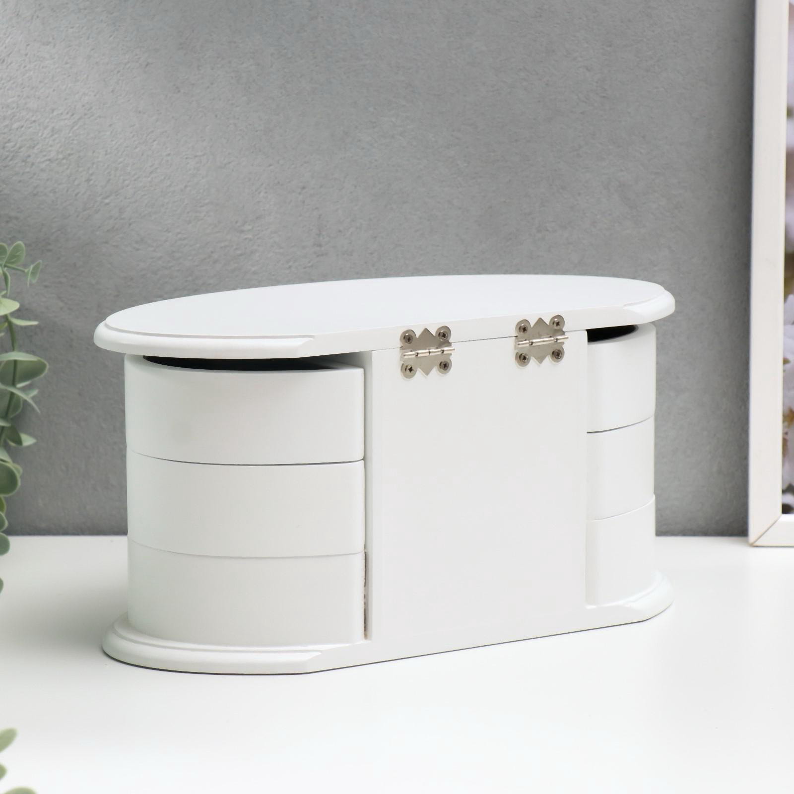 Особенности шкатулки: Выдвижные ящики, Для украшений, С внутренней обивкой, С делениями, С зеркалом Размер упаковки: 26.3 x 14.2 x 13 см. Тематика праздника: Универсальная тематика Вид дерева: Сосна Цвет: Белый Форма: Овальная Набор: Нет Тематика: Интерьер Покрытие: Краска Высота, см: 14.2 Длина, см: 13 Ширина, см: 26.3 tnved: 4420910000 Товар Каспи: Шкатулки Так приятно любоваться своими украшениями: скромными и яркими, изящными и массивными. А еще приятнее вынимать их из изысканной шкатулки, служащей достойным обрамлением для каждого из них. Шкатулка для украшений "Веер с раздвижными ящиками", дерево, 26.3x14.2x13 см будет замечательным подарком женщине, которая привыкла всегда выглядеть безупречно и подчеркивать неповторимую красоту своего образа разнообразными аксессуарами. Эффектный дизайн шкатулки делает ее настоящей жемчужиной дамского туалетного столика, а специальные отделения позволяют с удобством хранить в них украшения и аксессуары. Стиль и функциональность в одном флаконе. | ||
