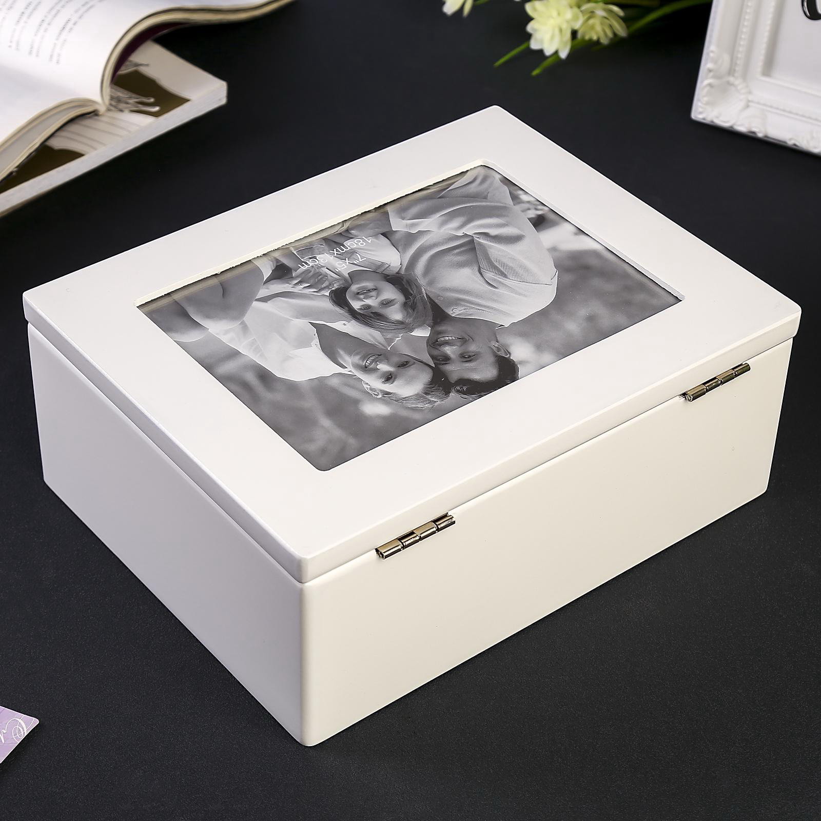 Шкатулка для украшений с фоторамкой 13x18 см "Стиль", дерево, с ящиком, белая, 18.5x9x22.9 см, 9x22.9x18.5 см., Китай