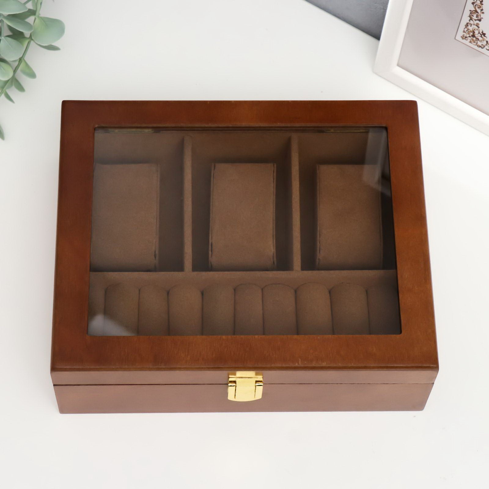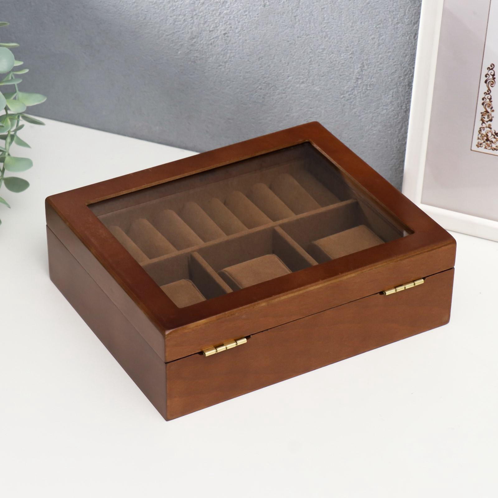 Шкатулка для украшений и часов 3 деления "Корица", дерево, 7.4x18x22 см, 18x22x7.5 см., Китай