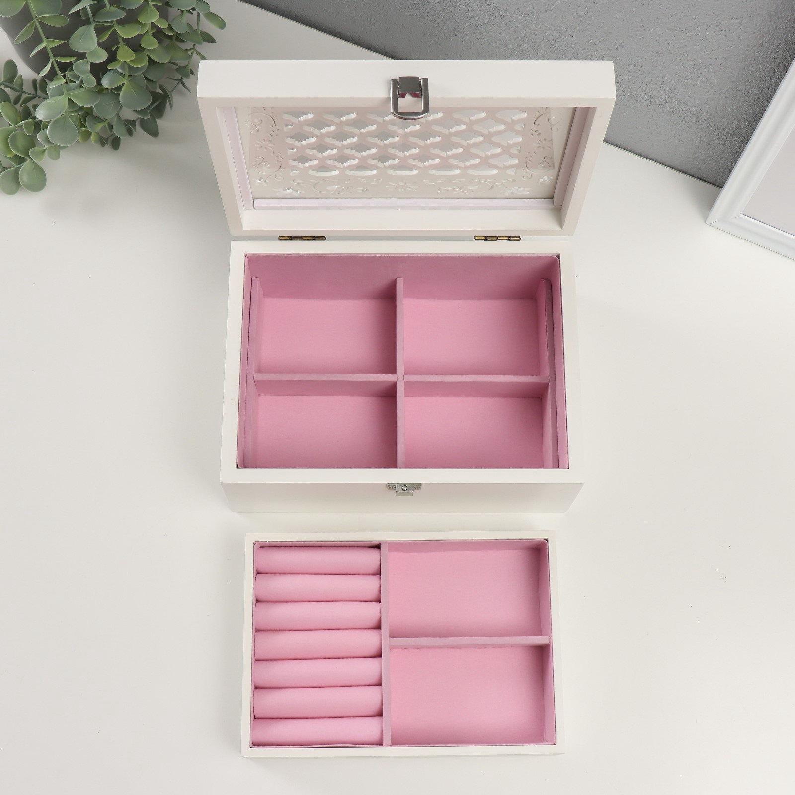Шкатулка для украшений "Белоснежная", дерево, 22x16x10 см, 16x22x10 см., Китай