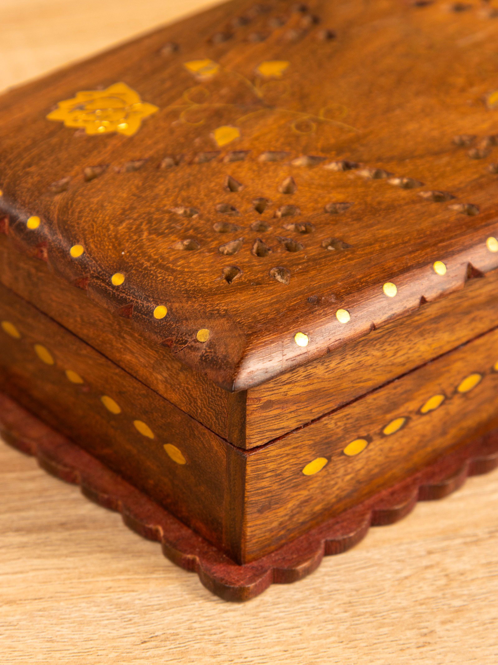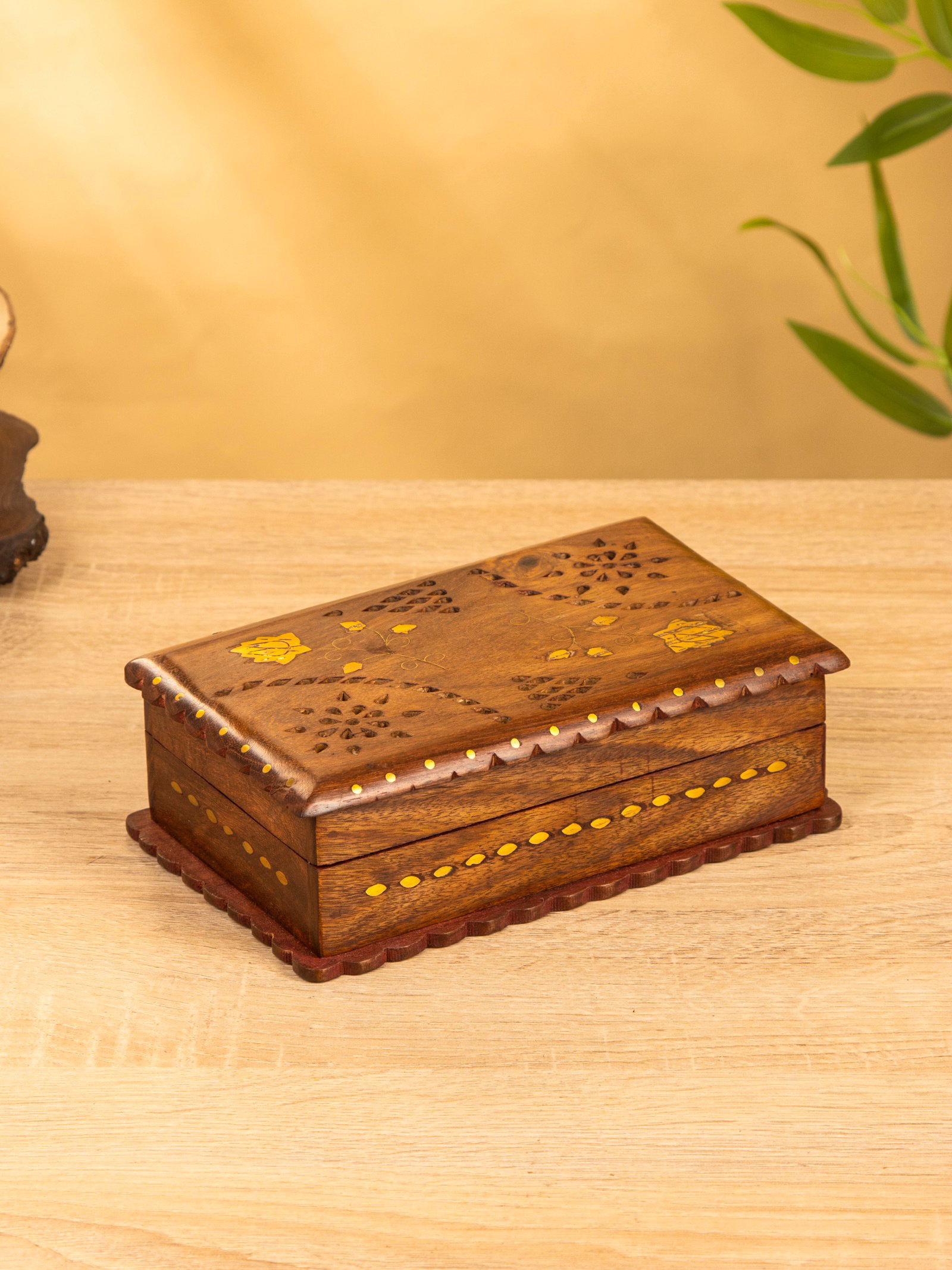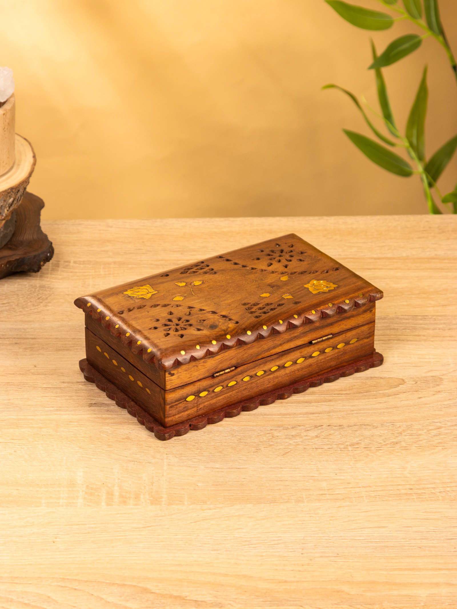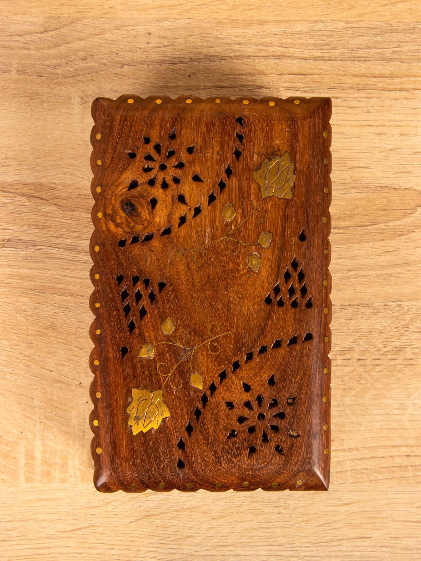 Шкатулка резная "Флористика" 20х12.5х6.5 см, дерево шишам, 12.5x20x6.5 см., Индия