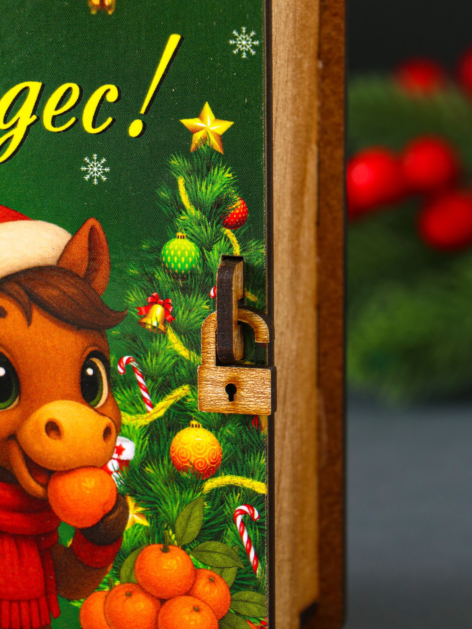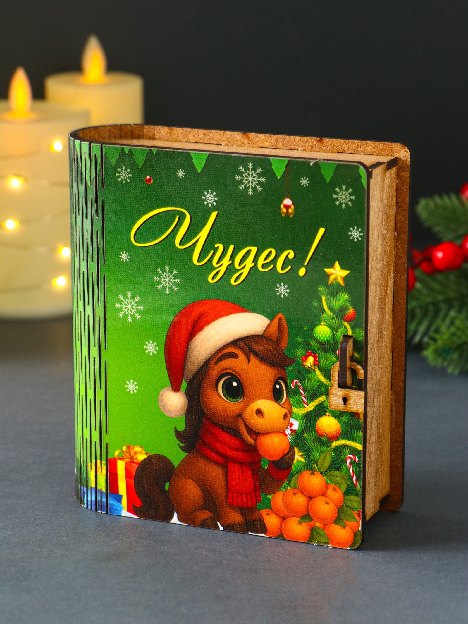 Новогодняя деревянная шкатулка-книга "Конь. Чудес", 14x12x5 см, Россия