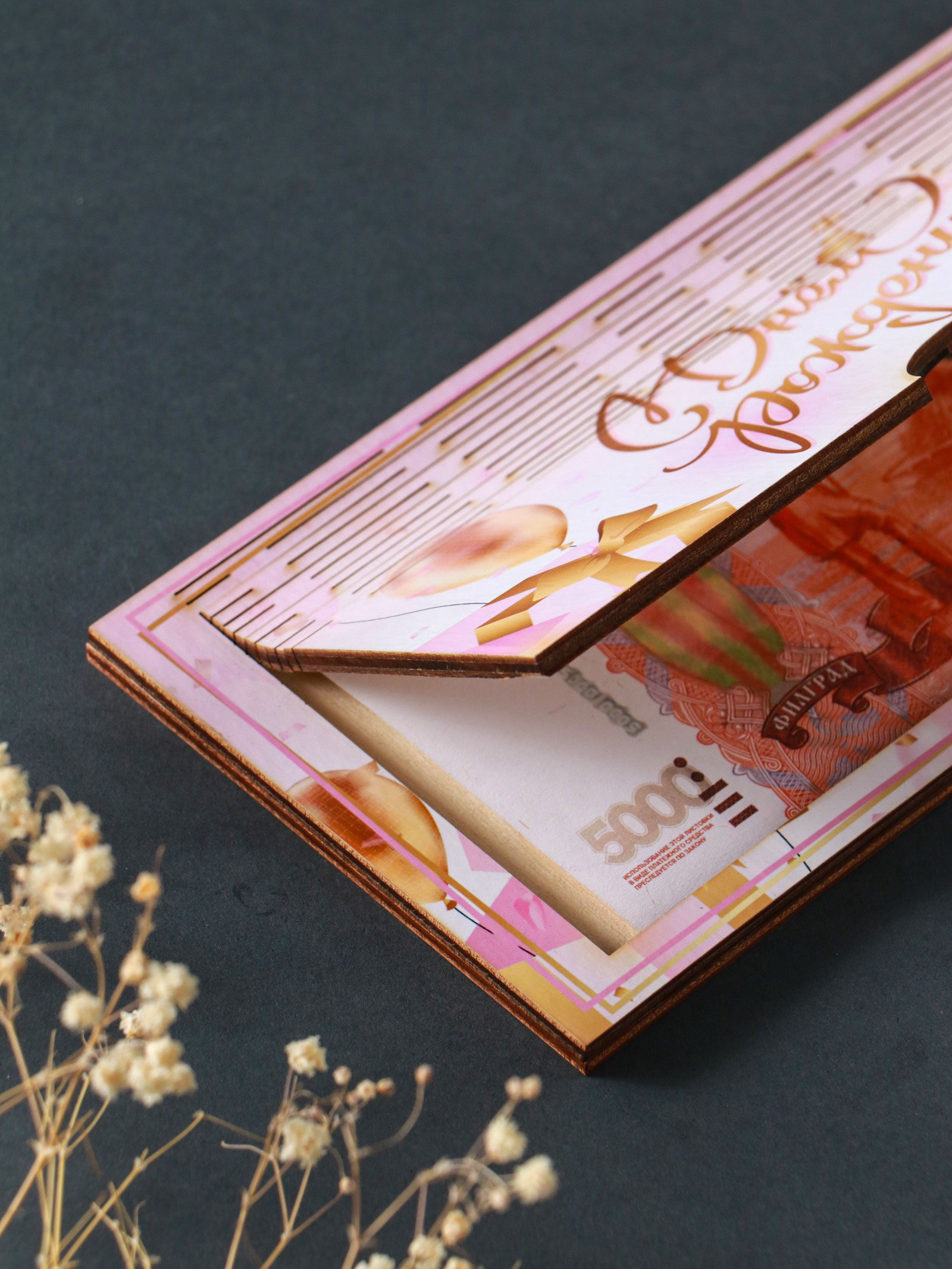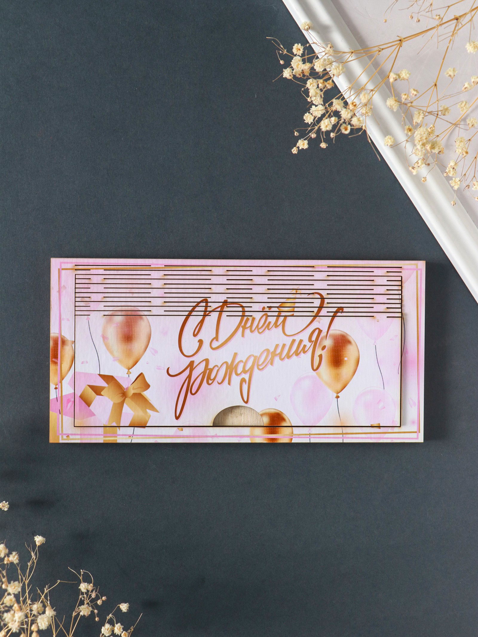 Купюрница подарочная, открытка "С Днём Рождения", шкатулка для денег, карточек, сертификатов, розовый, Хорошие сувениры, Россия