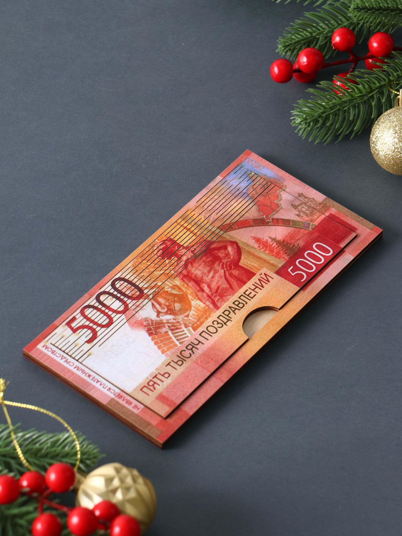 Купюрница подарочная, открытка "Пять тысяч поздравлений", шкатулка для денег, карточек, сертификатов, Россия