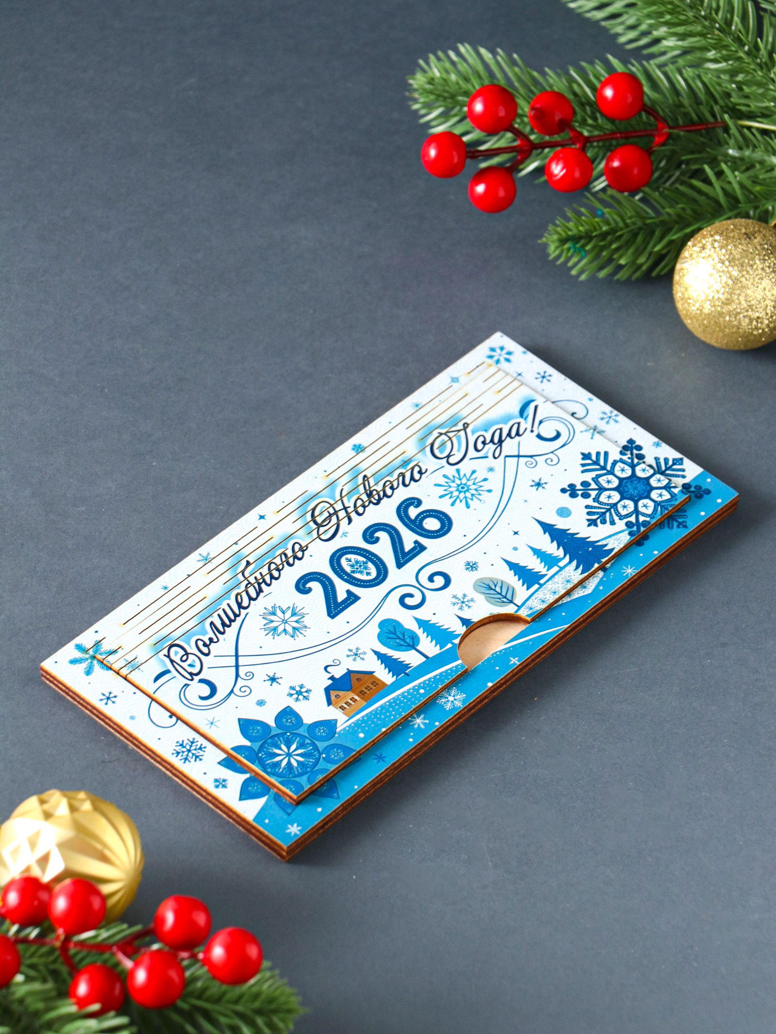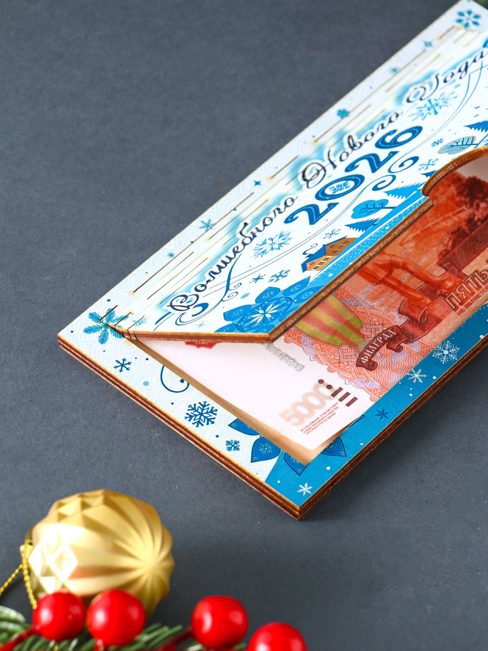 Купюрница подарочная, открытка "С Новым Годом 2026", шкатулка для денег, карточек, сертификатов, Россия