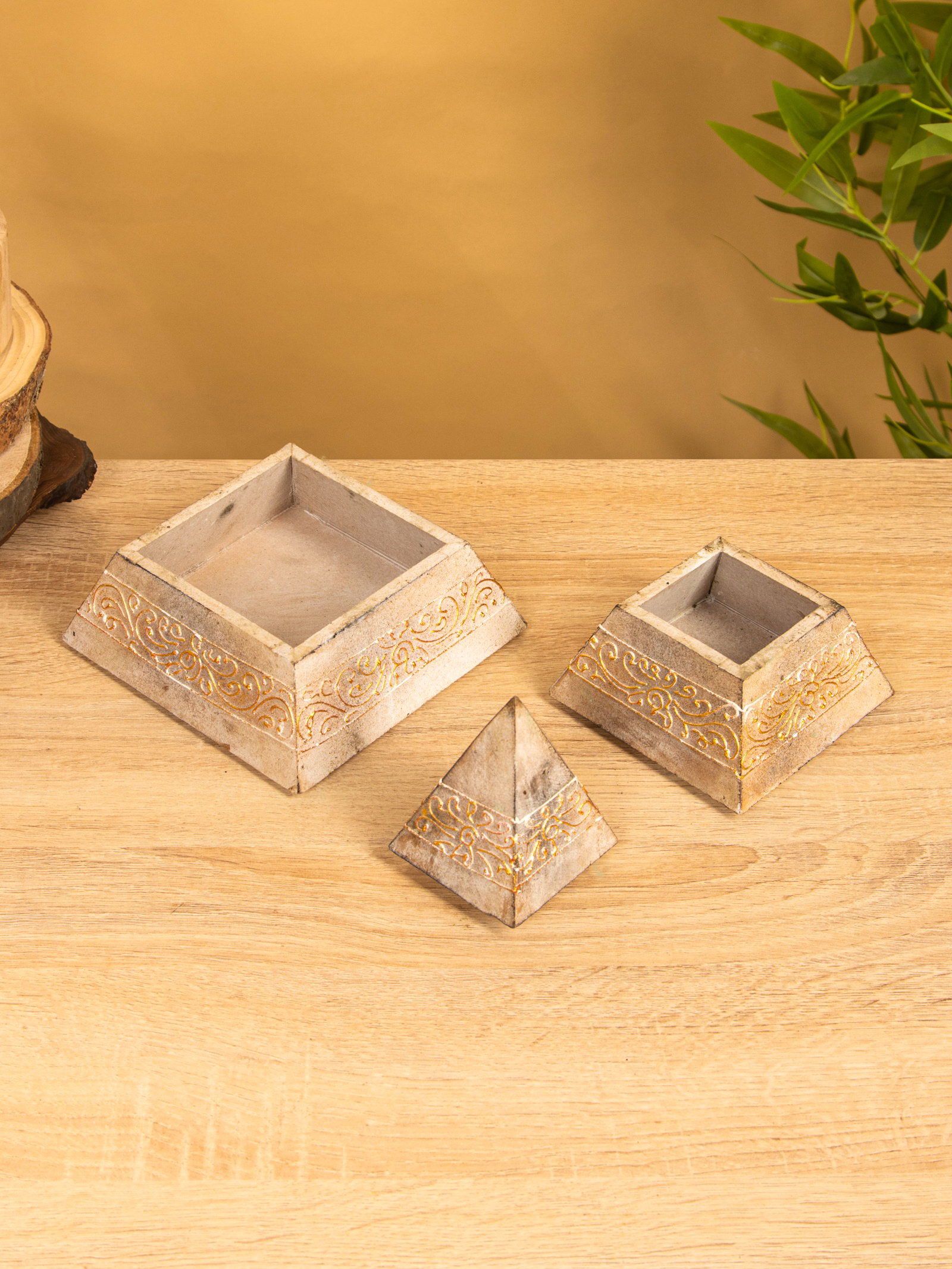Шкатулка "Пирамидка", 15x15x20 см, МДФ, бежевая, 15x15x20 см., Индонезия