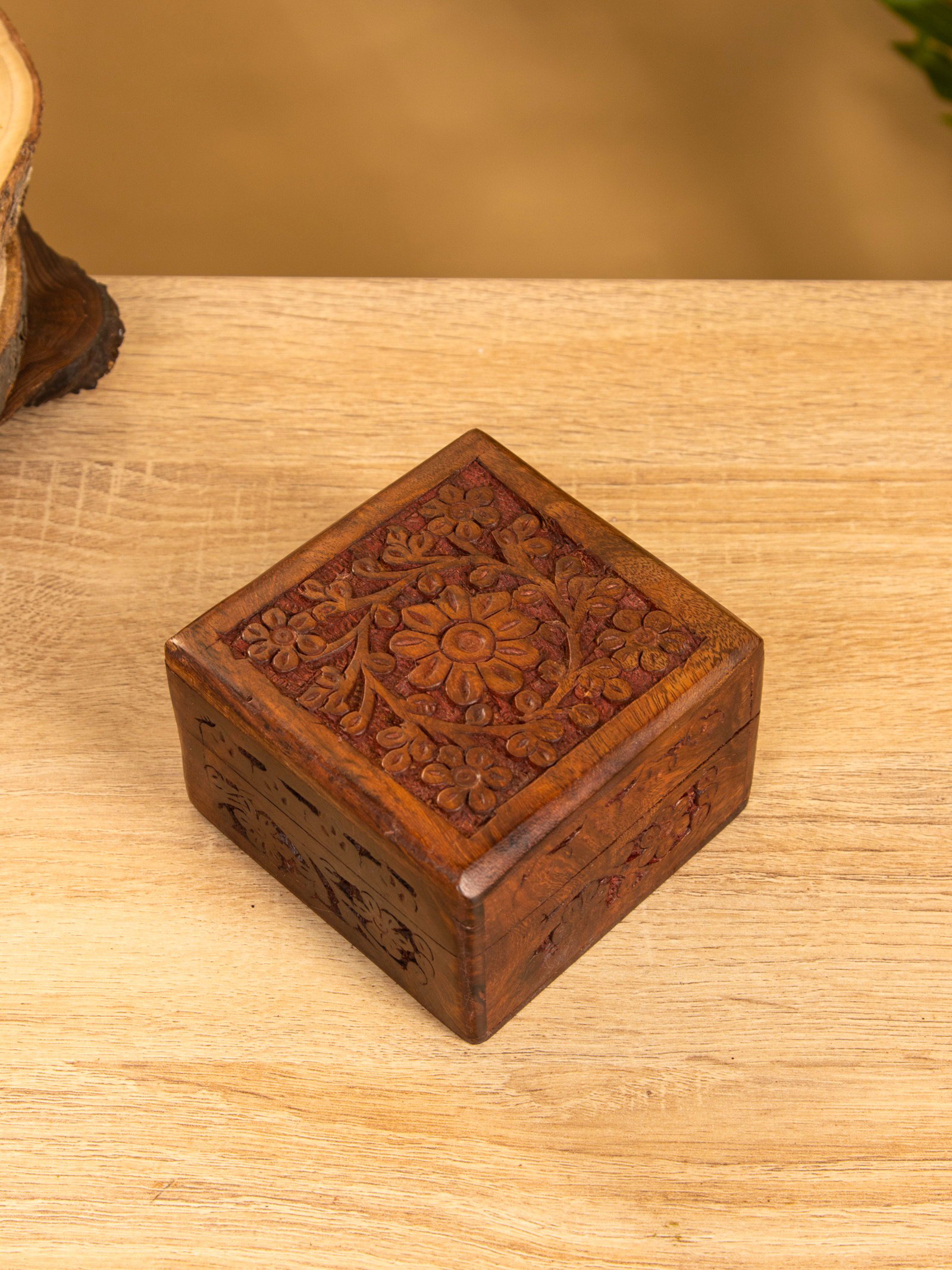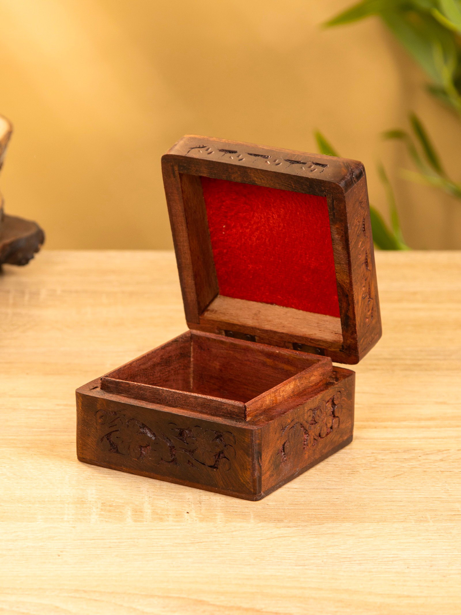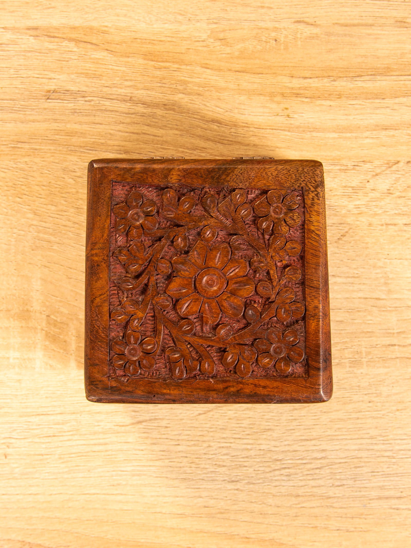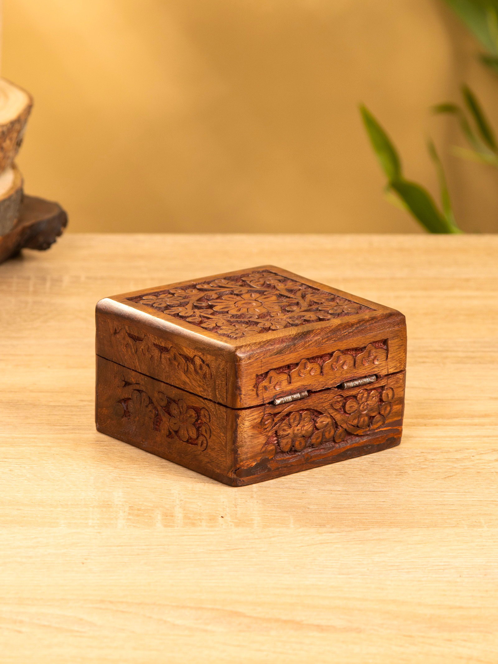 Шкатулка резная, 10x10x6 см, дерево шишам, 10x10x5 см., Индия